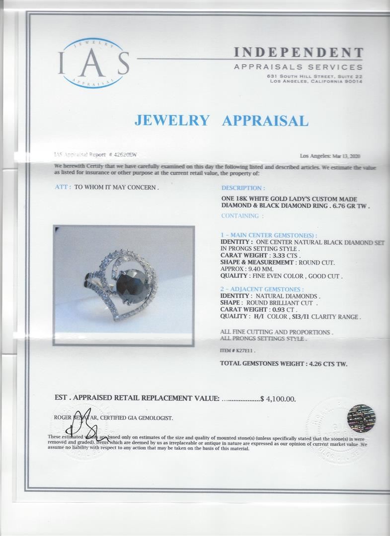 One 3.33ct Black Diamond and Diamond Ring - 18KT White Gold. IAS certified. See Appraisal for more details.