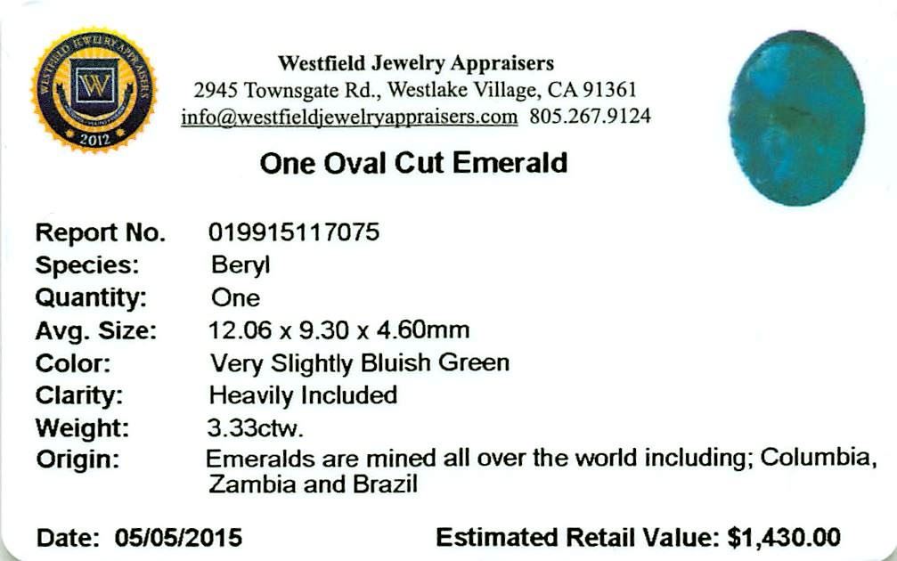 One 3.33 ctw Oval Emerald Parcel.