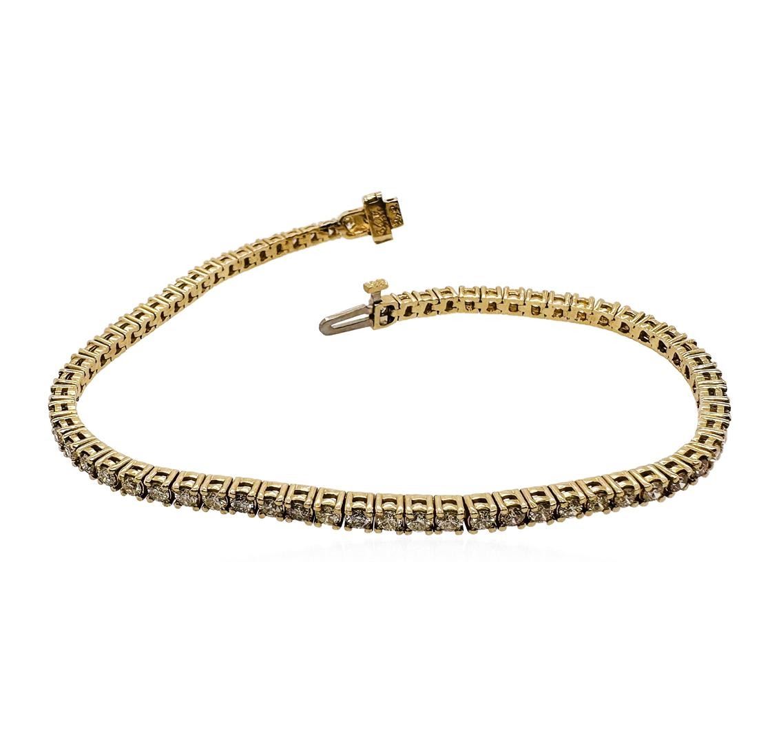 One electronically tested 14KT white gold lady's combination cast & assembled fashion straight line tennis bracelet with a tongue clasp with fold-under safety with a basket motif with a bright polish finish. Condition is new, good workmanship. The featured lady's bracelet measures approximately 7.00 inches in length. Identified with markings of 14K. Containing: 69 prong set round brilliant cut diamonds, approximate total weight of 69 stones = 3.36 ctw. Graded in the setting. Total weight of Diamonds: 3.36 ctw. Total estimated retail value: $9370