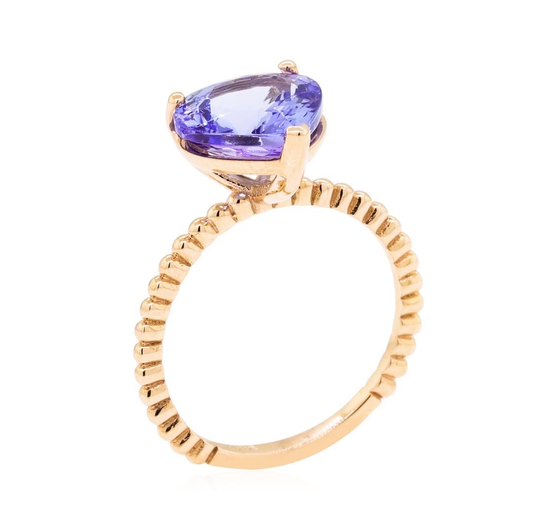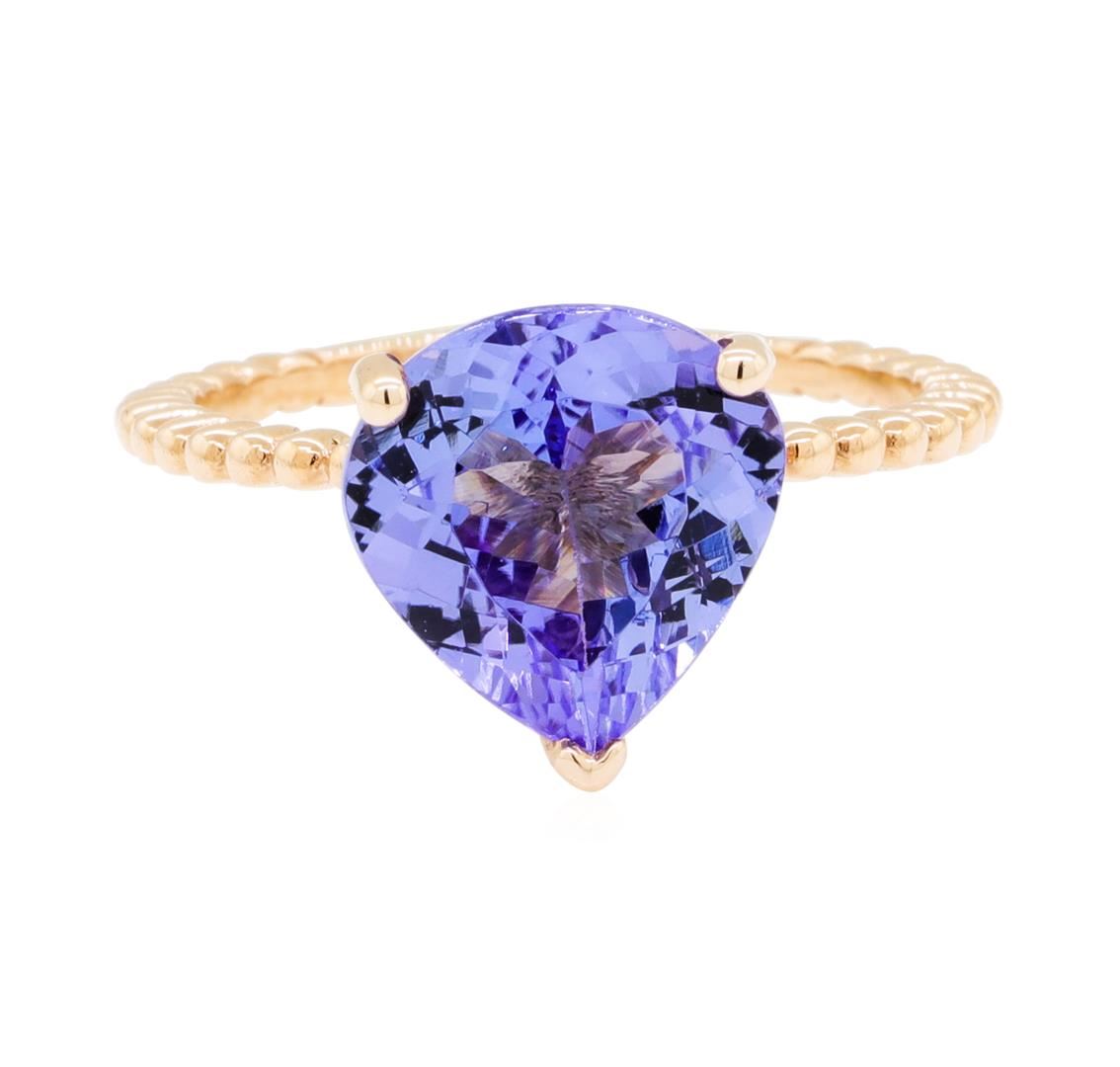 One lady's ring featuring: 14KT rose gold weighing 2.7 grams containing one tanzanite weighing 3.36ct.