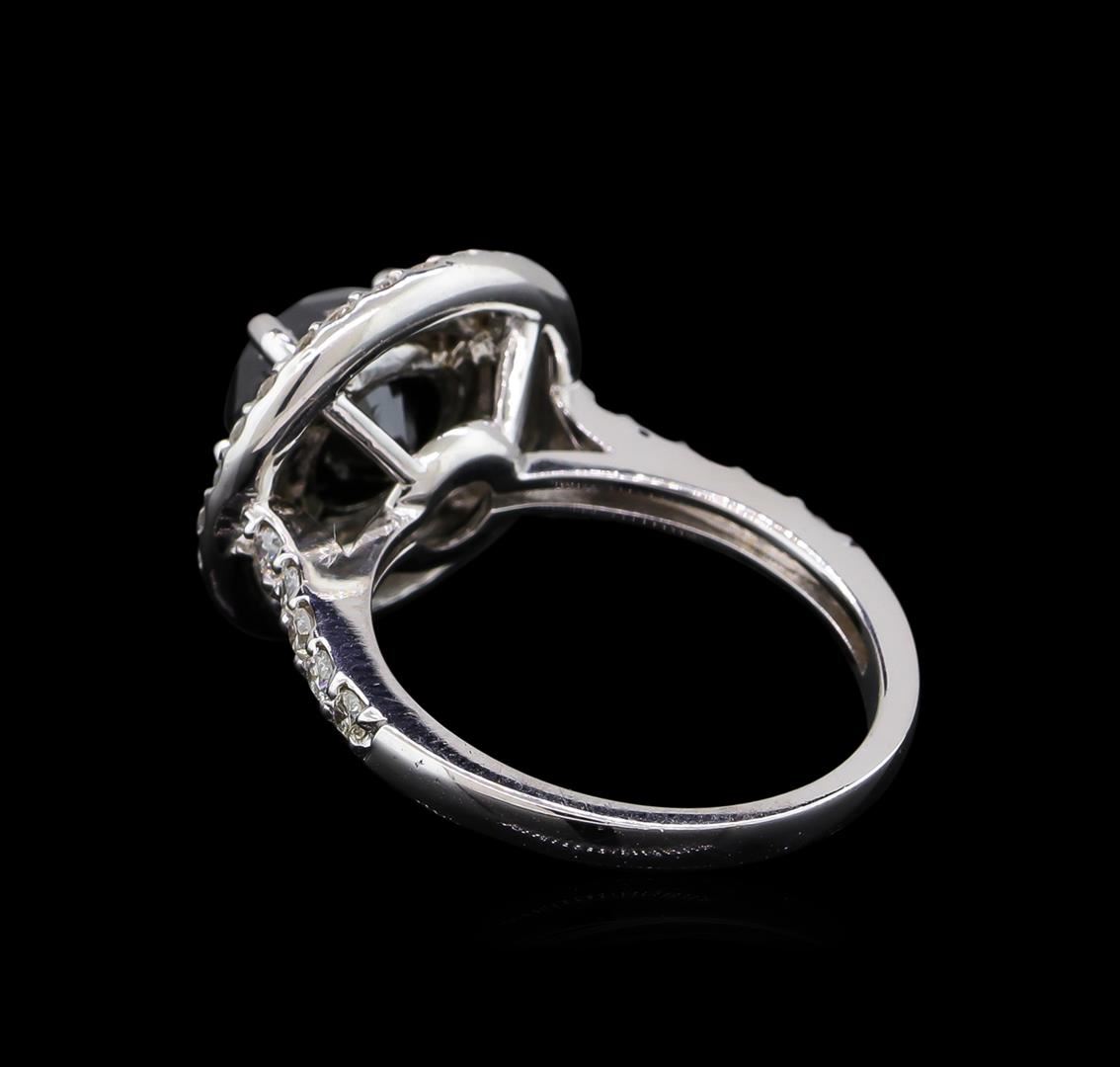 One ring featuring: 14KT white gold weighing 5.17 grams containing one black diamond with a total weight of 2.72ct and side diamonds with a total weight of 0.64ct.
