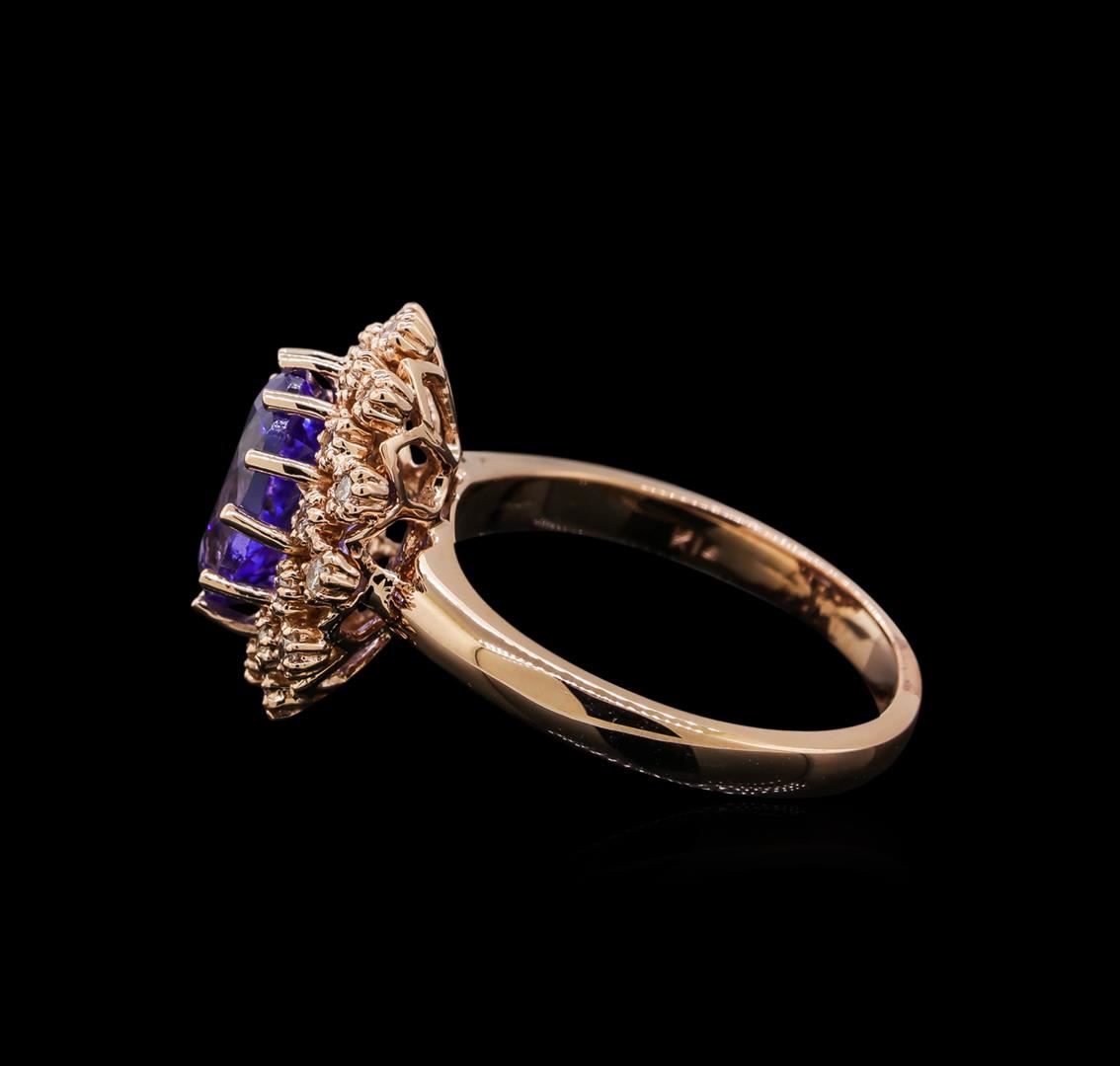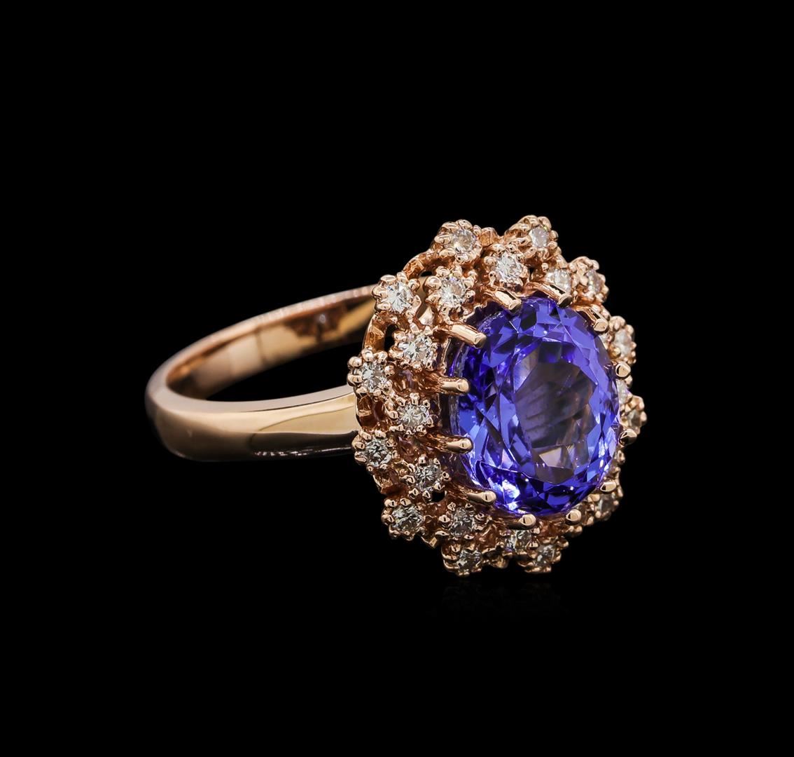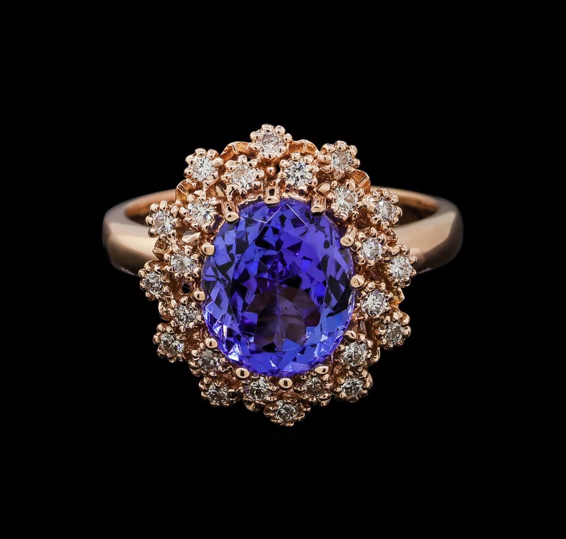One ring featuring: 14KT rose gold weighing 5.22 grams containing Tanzanite with a total weight of 3.38ct and diamonds with a total weight of 0.34ctw.