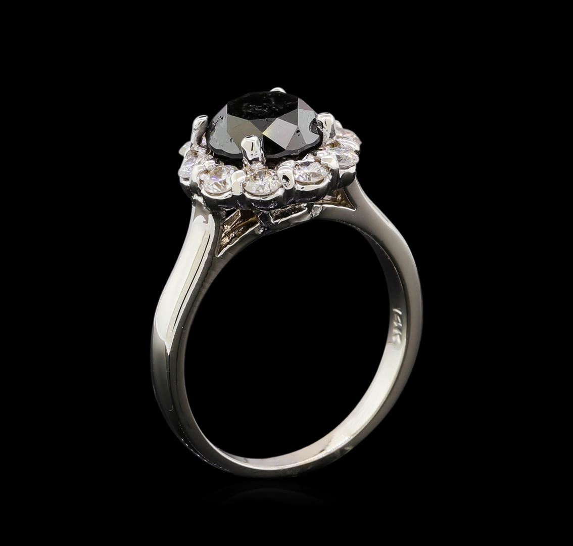 One ring featuring: 14KT white gold weighing 4.5 grams containing one black diamond with a total weight of 2.55ct and diamonds with a total weight of 0.65ctw.