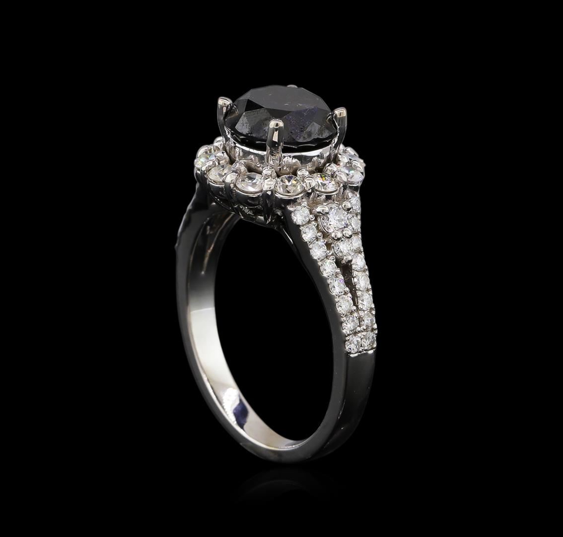 One ring featuring: 14KT white gold weighing 4.76 grams containing one black diamond with a total weight of 2.48ct and side diamonds with a total weight of 0.93ct.