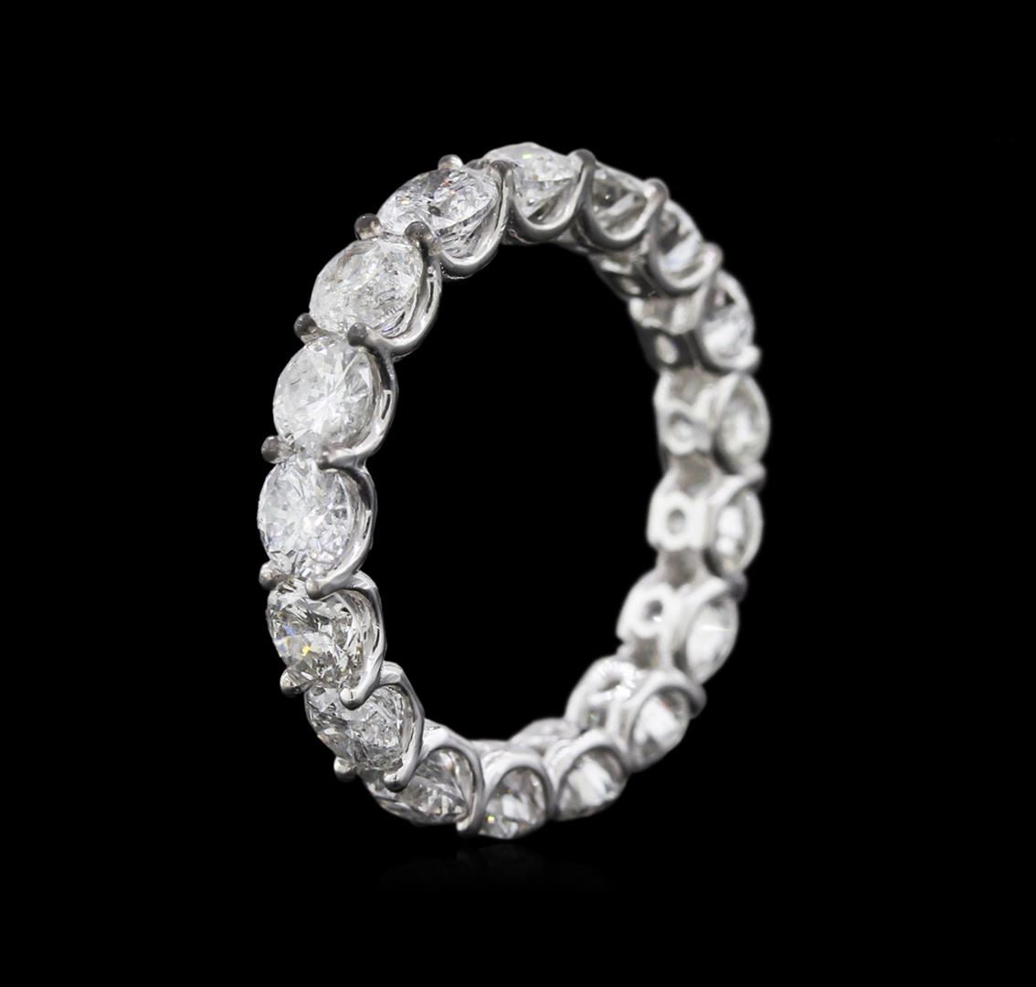 One electronically tested 14KT white gold ladies cast diamond eternity ring with a bright polish finish. Condition is new. Containing: Seventeen prong set round brilliant cut diamonds, measuring 3.80 - 3.80 x 2.28mm (depth est.) stated. Total Weight of 17 Stones = 3.41ct. Clarity: I-1 to I-3. Color: G - H, Cut is Good. Diamonds are graded in the mounting, unless otherwise stated. Total Weight of Diamonds 3.41ct. Total Weight of Wedding Band 2.60 grams. GGL Appraised at $4,515.00.