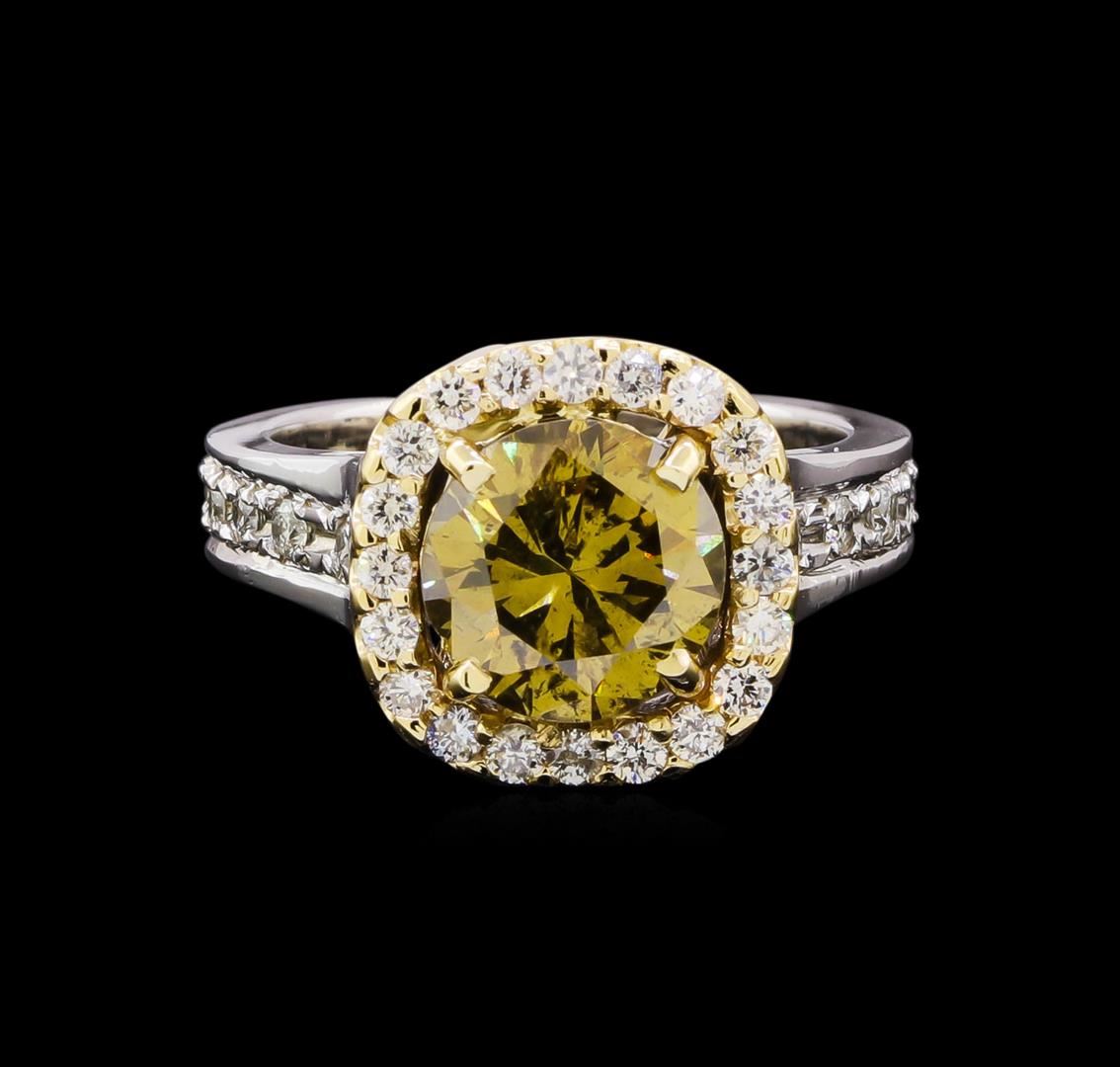 One electronically tested 14KT white gold lady's combination cast & assembled fashion ring with a cathedral halo with a bright polish finish. Featured lady's ring has a shank measuring 3.25 millimeters in width. Identified with markings of "14K". Condition is new, good workmanship. Containing: One pave' set round brilliant cut diamond, measuring 8.83 - 8.80 x 5.73mm (depth est.) approximate weight of 2.78ct. Colored gemstones are presumed to have been subjected to commonly used enhancement processes. Graded in the setting. Clarity: SI-2 Cut Good Thirty prong set round brilliant cut diamonds, measuring 1.80 - 1.70 x 1.09mm (depth est.) approximate total weight of 30 Stones = 0.65ct. Graded in the setting. Clarity: SI-1 to SI-2. Color: G - I. Cut Good. Total Weight of Diamonds 3.43ct. Total Weight of Ring 9.20gm. GAS Appraised at $33,645.00.