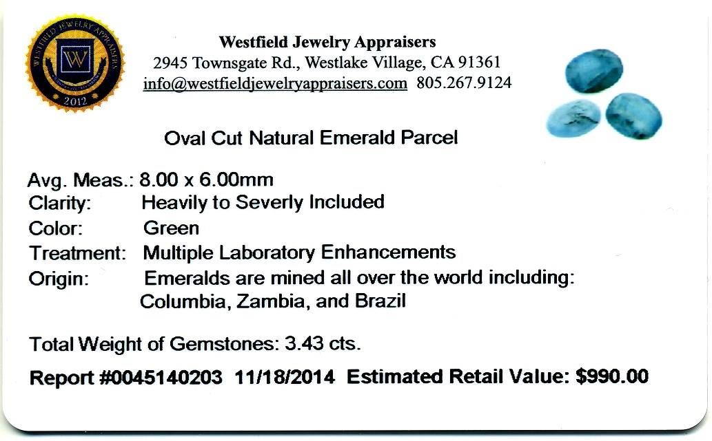 One 3.43 ctw Oval Cut Natural Emerald Parcel.