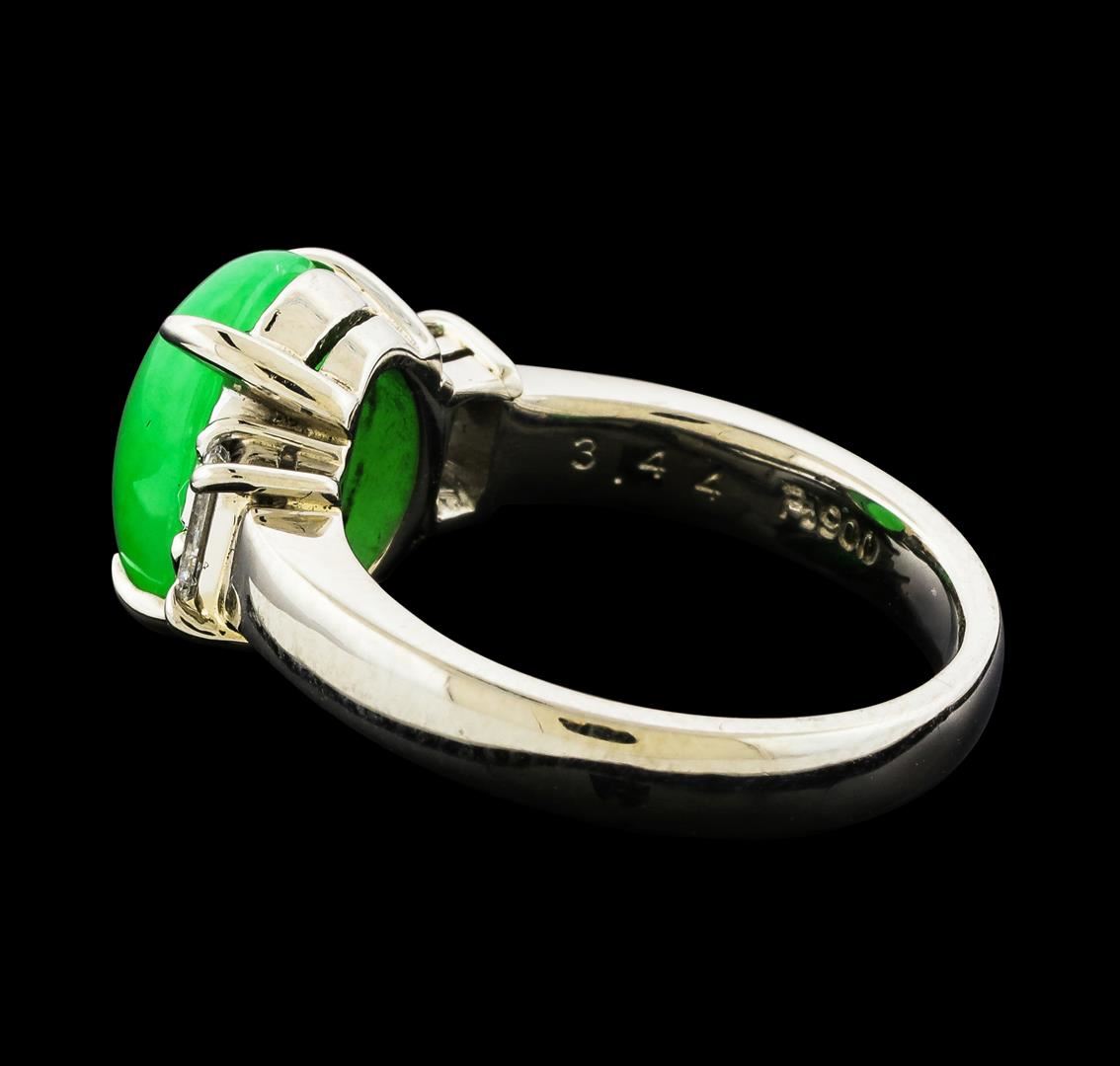 One ring featuring: Platinum containing Jade with a total weight of 3.44ct and Diamonds with a total weight of 0.32ct. Total Weight of Ring: 8.8 grams.