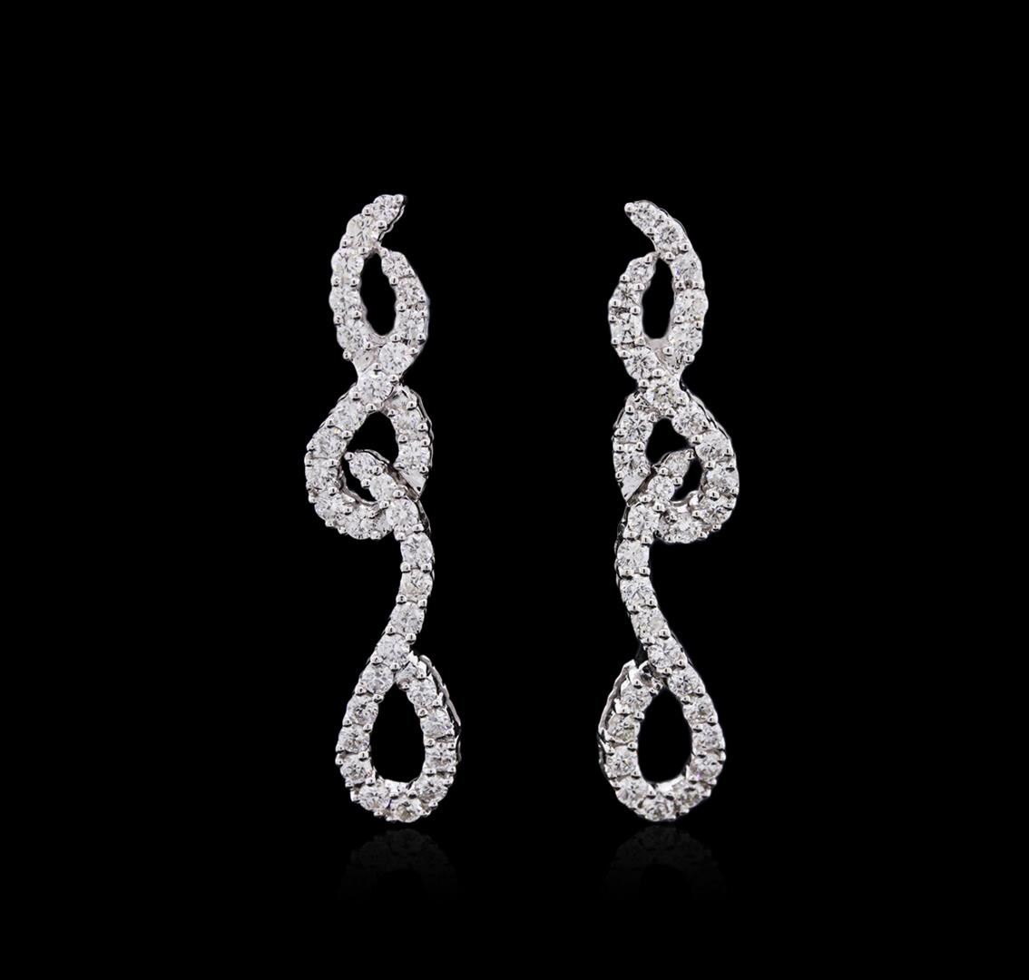 One pair electronically tested 18KT white gold ladies cast diamond earrings with friction posts with a bright polish finish. Identified with markings of "18K". Condition is new. Containing: Sixty-Eight prong set round brilliant cut diamonds, measuring 2.40 - 2.40 x 1.44mm (depth est.) approximate. Total Weight of 68 Stones = 3.44ct. Clarity: VS-2 to SI-1. Color: H - I, Cut is Good. Diamonds are graded in the mounting, unless otherwise stated. Total Weight of Diamonds 3.44ct. Total Weight of Earrings 68.00 grams. GGL Appraised at $10,160.00.