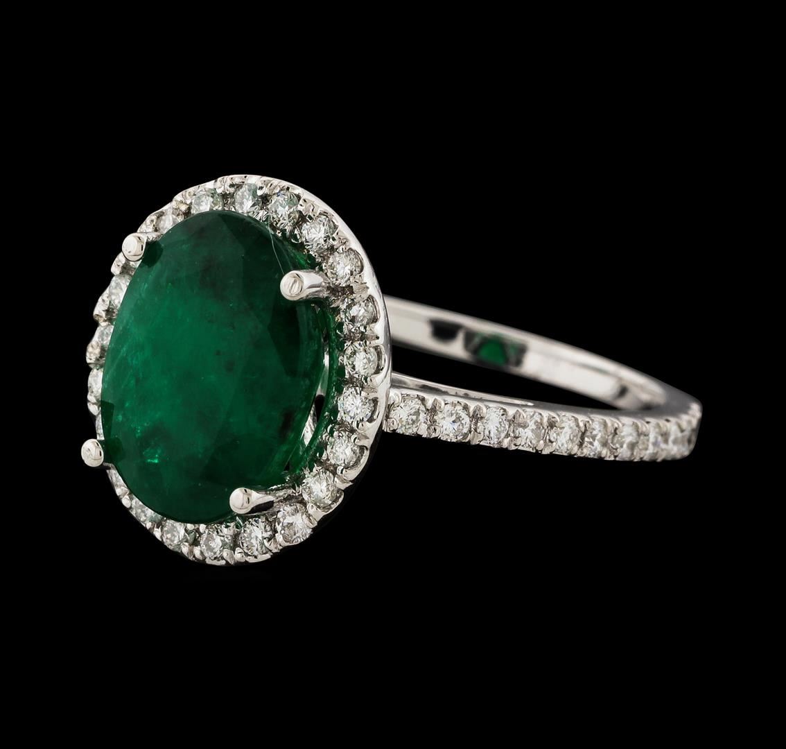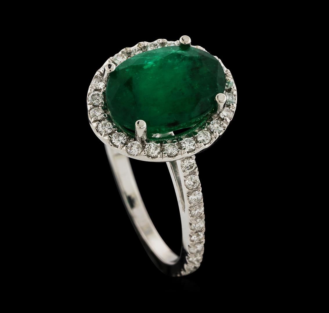 One Ring : 14KT white gold weighing 3.23gm containing one emerald with a total weight of 3.45ct and side diamonds weighing 0.46ctw.