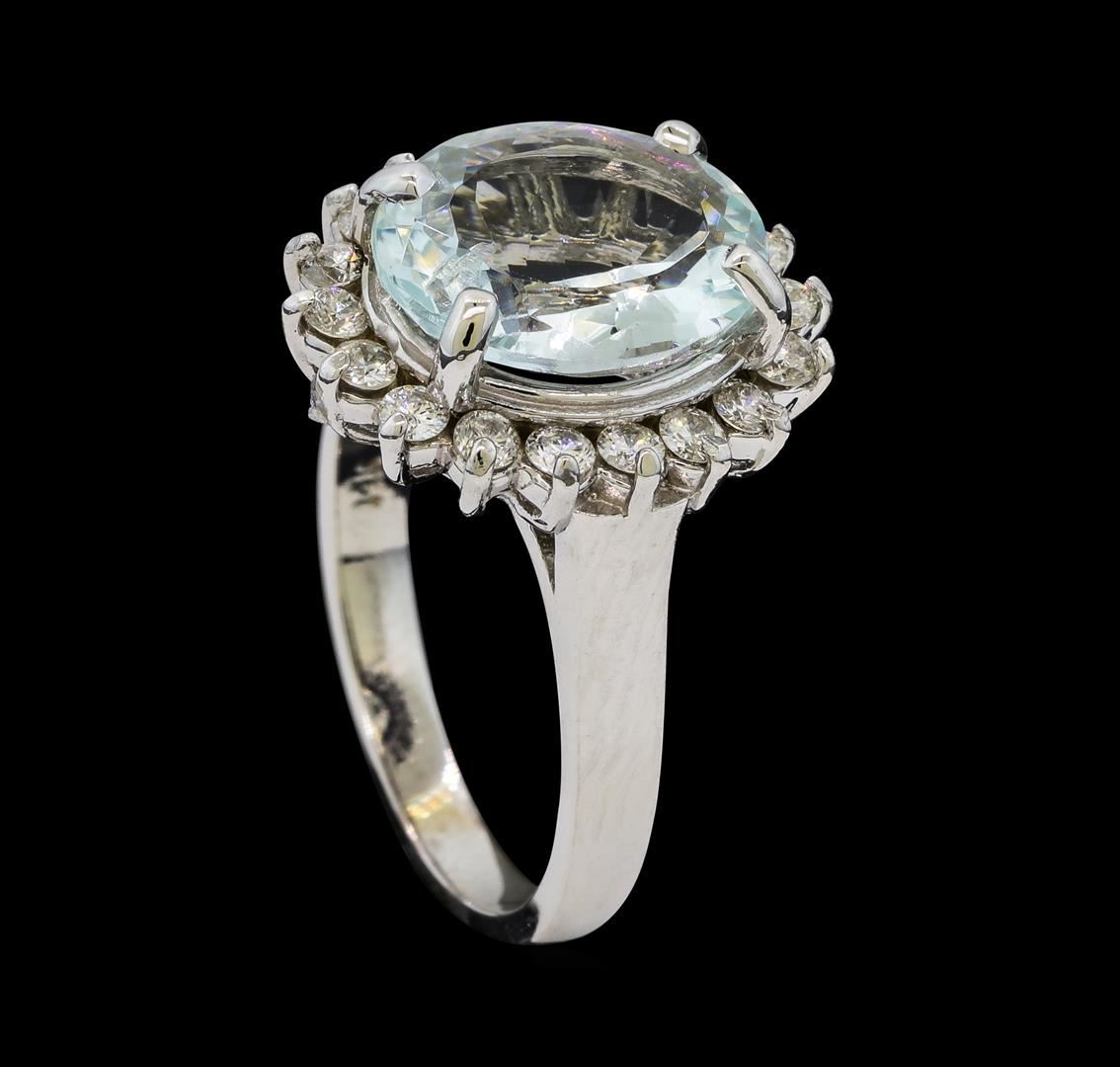 One Aquamarine and Diamond Ring including: 14KT White Gold weighing a total of 5.35 grams, Aquamarine weighing a total of 3.48ct, and 18 Diamonds weighing a total of 0.58ctw.