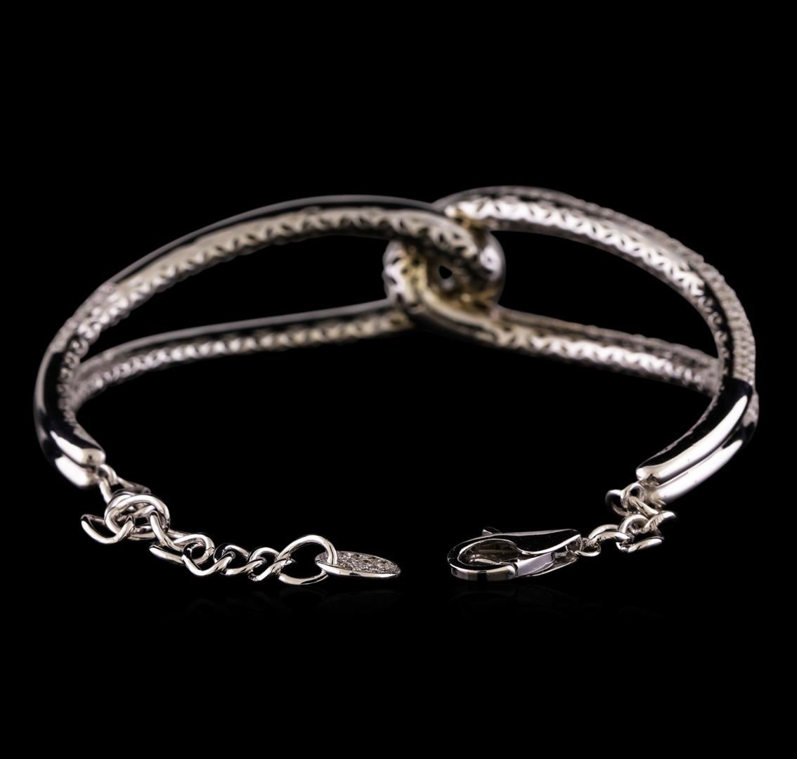 One electronically tested 14KT white gold lady's combination cast & assembled fashion cuff bracelet with a lobster claw clasp with a bright polish finish. The featured lady's cuff bracelet has an attached 4.4mm linked chain and can be worn between seven and eight inches in length, Identified with markings of 'K14'. Condition is new, good workmanship. Containing: Thirty prong set round brilliant cut diamonds, measuring 1.85 - 1.75 x 1.12mm (depth est.) approximate total weight of 30 Stones = 0.66ct. Graded in the setting. Clarity SI-1 to SI-2. Color: G - I Cut Good Two Hundred Forty-Nine prong set round brilliant cut diamonds, measuring 1.50 - 1.35 x 0.89mm (depth est.) approximate total weight of 249 Stones = 2.79ct. Graded in the setting. Clarity SI-1 to SI-2. Color: G - I Cut Good Six prong set round brilliant cut diamonds, measuring 1.10 - 1.05 x 0.67mm (depth est.) approximate total weight of 6 Stones = 0.03ct. Graded in the setting. Clarity SI-1 to SI-2. Color: G - I Cut Good. Total Weight of Diamonds 3.48ct.. Total Weight of Bracelet 19.40gm. GAS Appraised at $12,965.00.