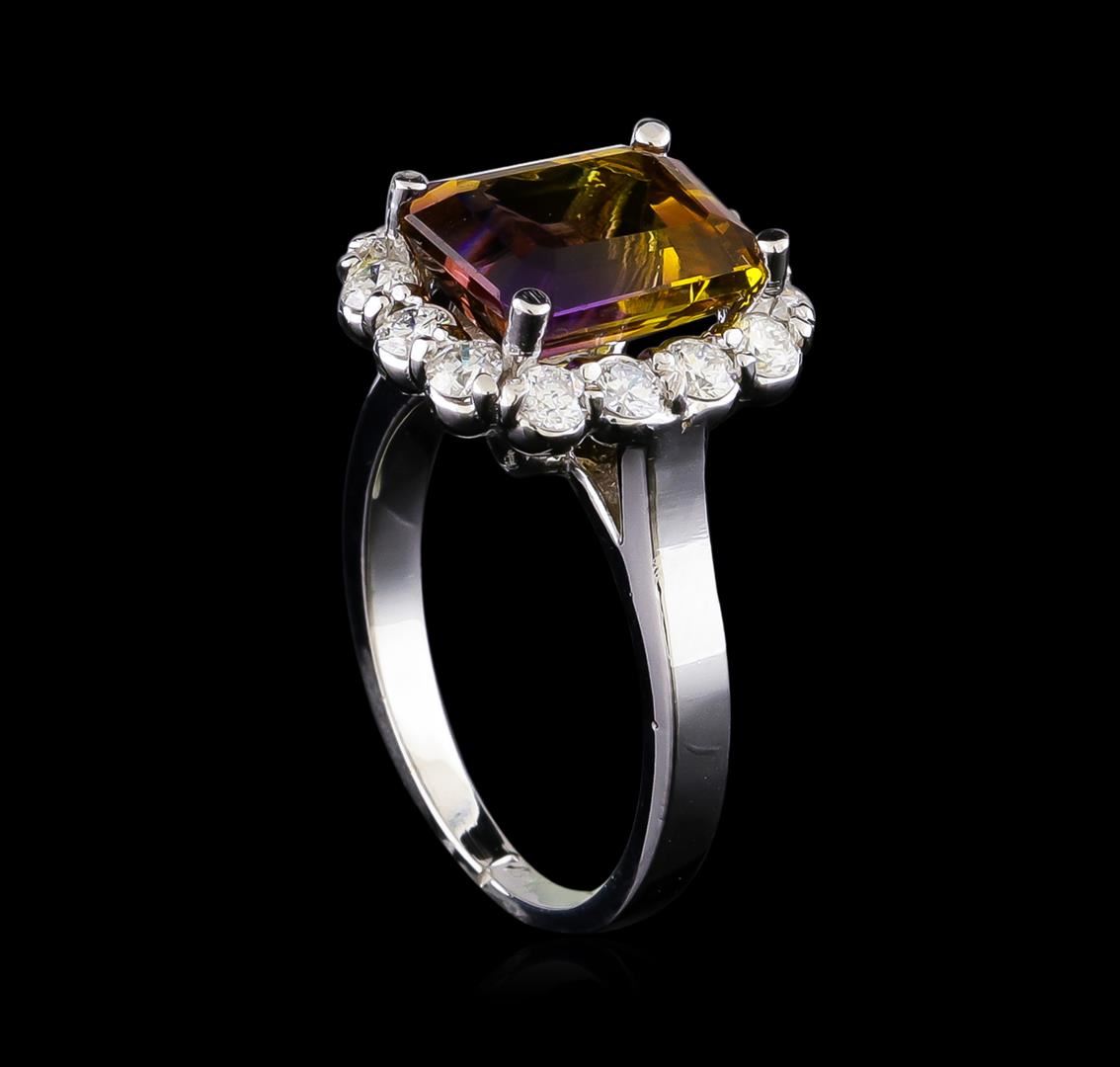 One ring featuring: 14KT white gold weighing 5.18 grams containing one ametrine weighing 3.50ct and diamonds weighing a total of 0.80ctw.