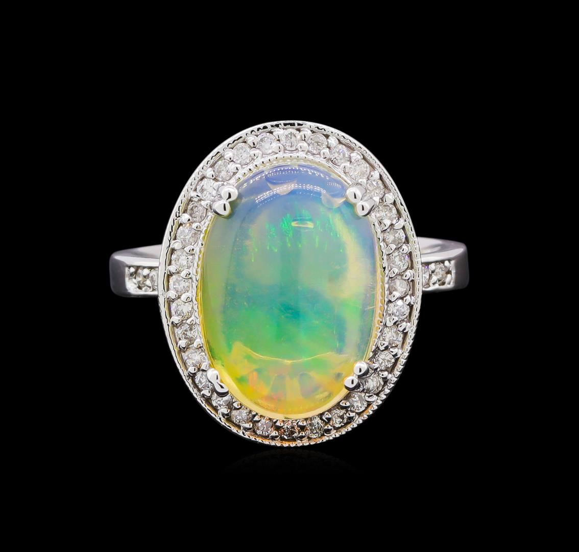 One ring featuring: 14KT white gold weighing 4.84 grams containing one opal weighing 3.50ct and diamonds weighing 0.35ctw.