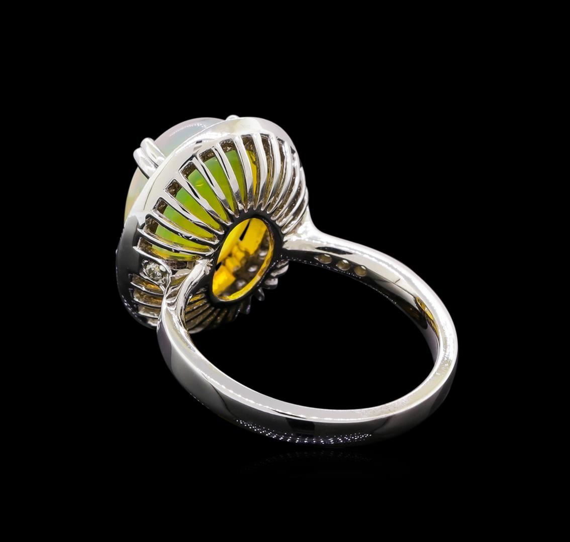 One ring featuring: 14KT white gold weighing 4.84 grams containing one opal weighing 3.50ct and diamonds weighing 0.35ctw.