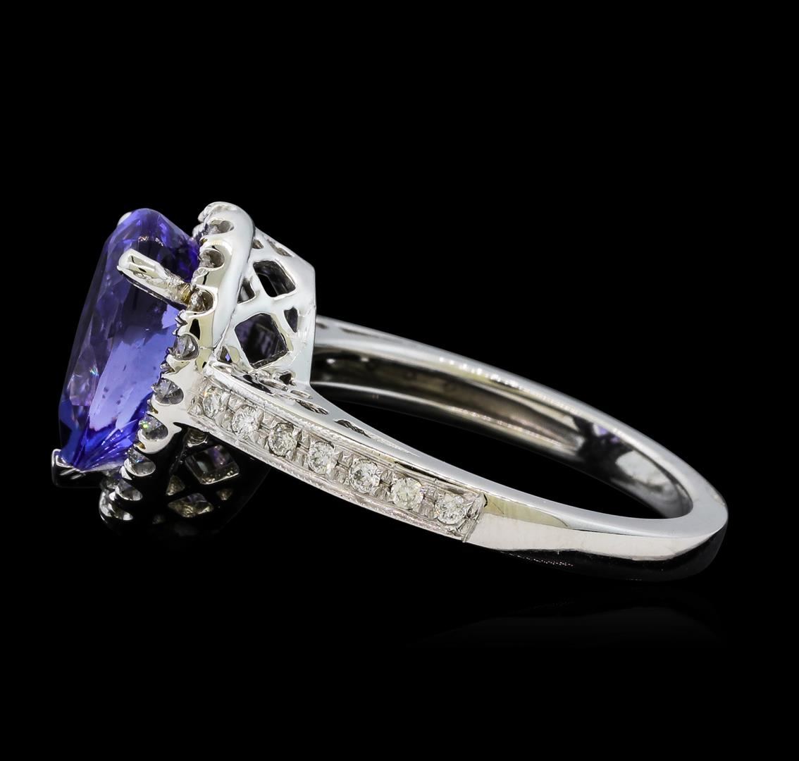 One Tanzanite and Diamond Ring including: 14KT White Gold weighing a total of 5.08 grams, Tanzanite weighing a total of 3.50ct, and 34 Diamonds weighing a total of 0.33ctw.