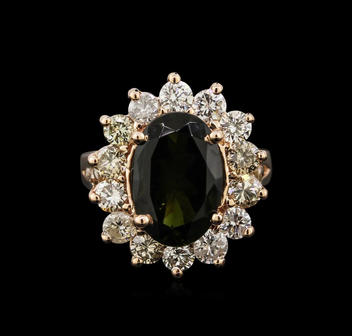 One ring featuring: 14KT rose gold weighing 8.46 grams containing one tourmaline with a total weight of 3.50ct and diamonds with a total weight of 02.09ct.