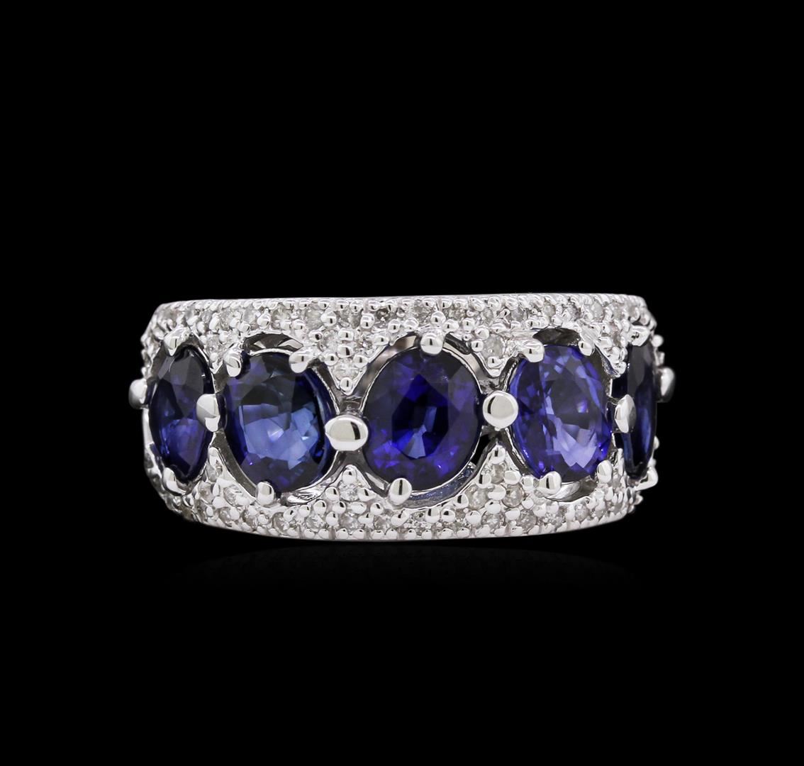 One ring featuring: 14KT white gold weighing 6.40 grams containing 5 sapphires with a total weight of 3.50ct and diamonds with a total weight of 0.32ct.
