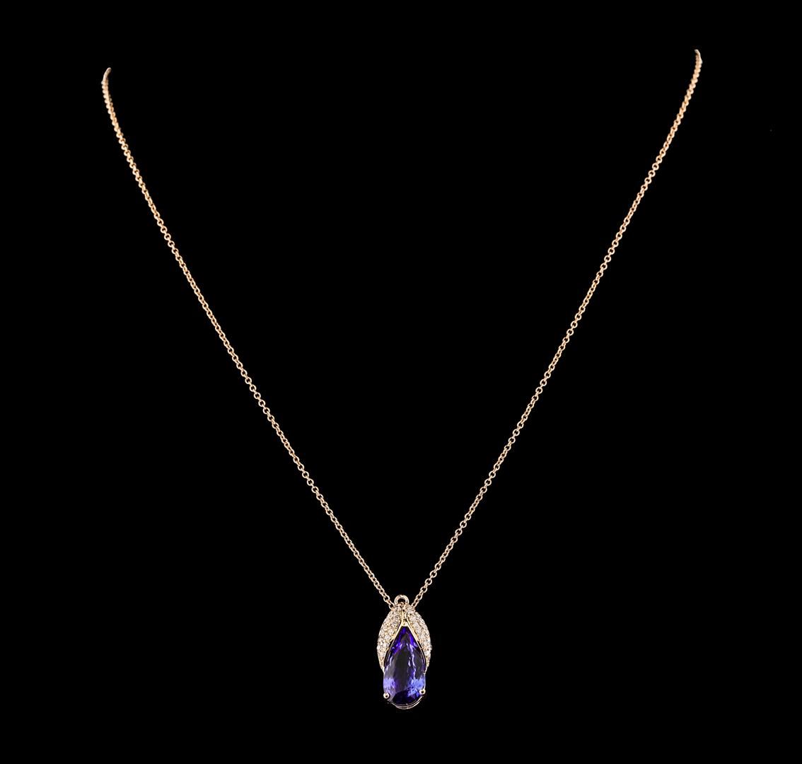 One pendant with chain : 14KT rose gold weighing 2.05gm containing one tanzanite center stone with a total weight of 3.52ct and side diamonds weighing 0.20ctw.