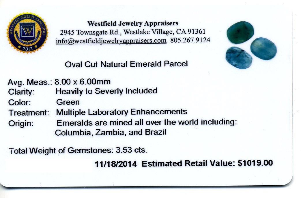 3.53cts. Oval Cut Natural Emerald Parcel Westfield Appraised at $1,019.00.