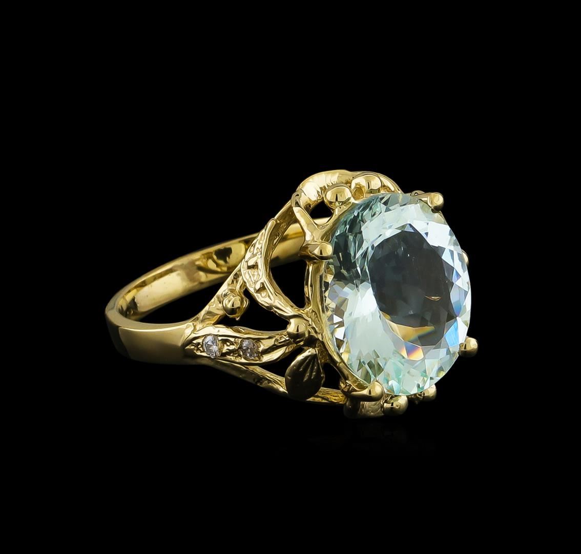 One Ring featuring: 14KT Yellow Gold weighing 3.33 grams containing one Aquamarine center stone with a total weight of 3.55ct and Diamonds with a total weight of 0.04ct.