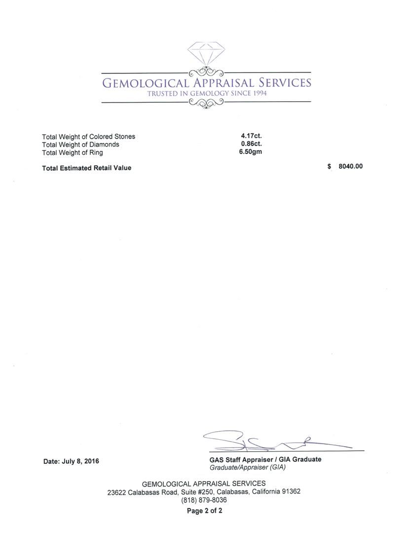 Not all Jewelry, watches or loose stones are appraised and the appraisals are provided for bidders only in certain instances at the discretion of SAA. Our appraisals are conducted by independent third-party appraisal firms. Such firms may be certified GIA Gemologists or have education in the industry or alternative certifications. Appraisals should be used for verification of gemstone and/or metal weight, size, and grade only, not actual value for resale or insurance purposes. Appraisal value should be not considered for actual value, as price varies greatly from retail locations and other merchants in different geographic locations. All Items auctioned by SAA should not be purchased with a view or expectation toward resale for appraisal price given, or to make a profit. The ultimate value for which an item can be resold may vary drastically from the appraisals listed by SAA.
