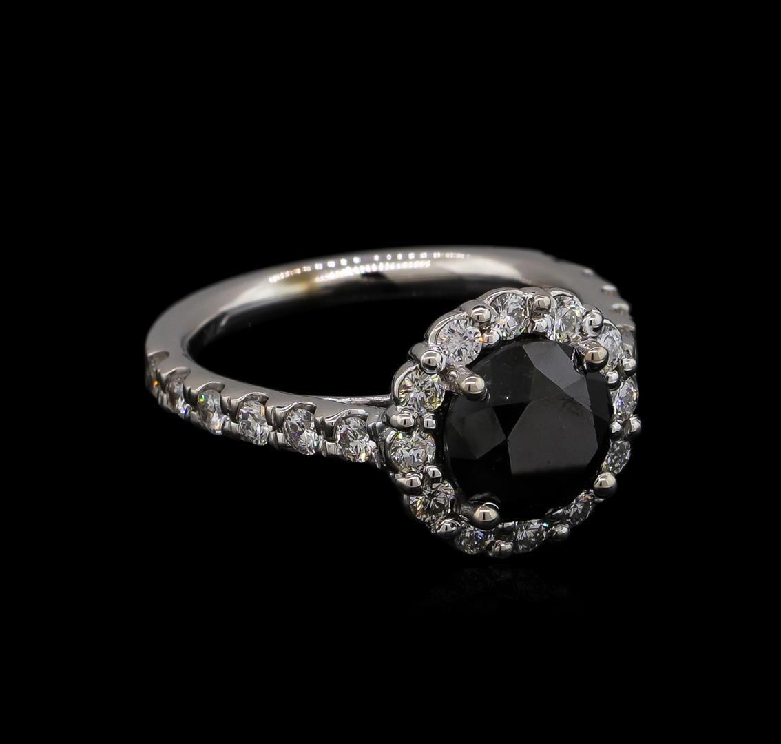 One ring featuring: 14KT white gold weighing 4.65 grams containing one black diamond with a total weight of 2.80ct and side diamonds with a total weight of 0.76ct.