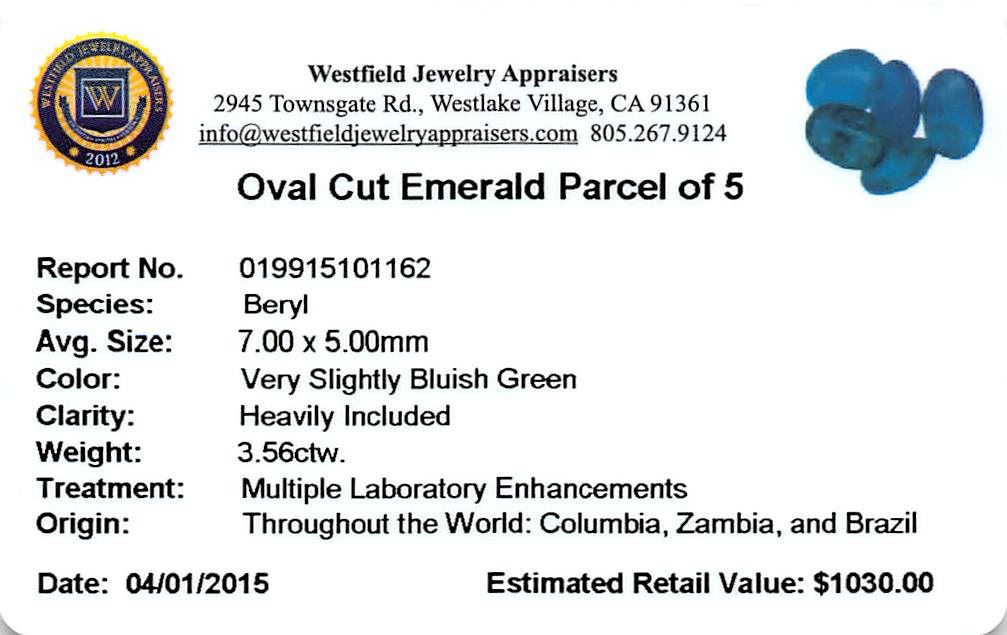 One 3.56 ctw Oval Mixed Emerald Parcel.