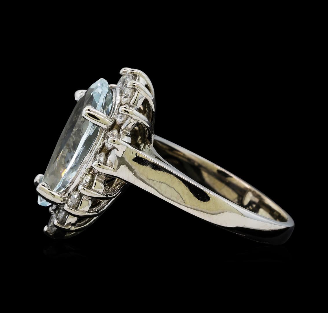 One Aquamarine and Diamond Ring including: 14KT White Gold weighing a total of 6.40 grams, Aquamarine weighing a total of 3.60ct, and 16 Diamonds weighing a total of 0858ctw.