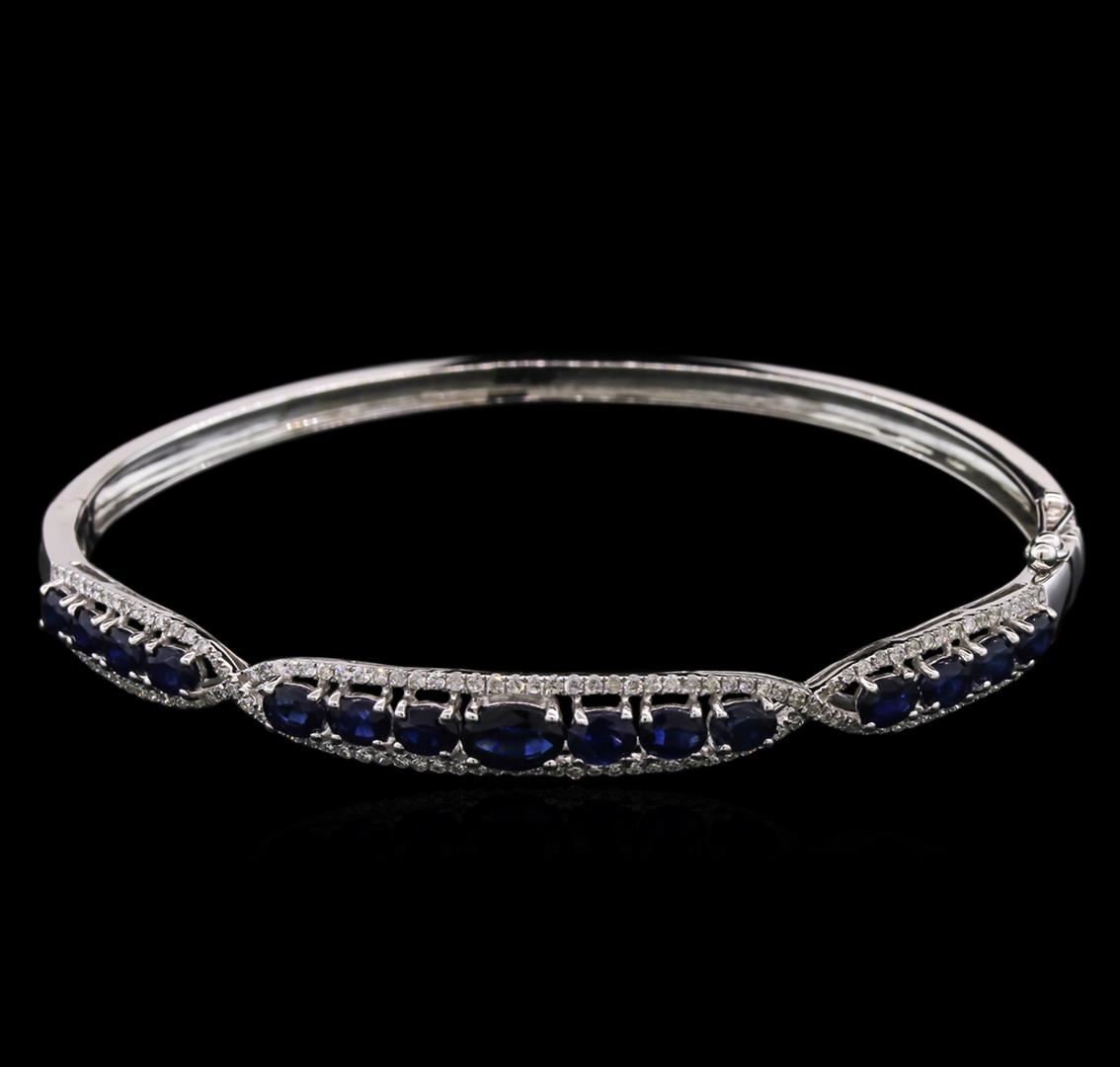 One bangle bracelet featuring: 14KT white gold weighing 11.40 grams containing 15 blue sapphires with a total weight of 3.60ct and diamonds with a total weight of 0.63ct.