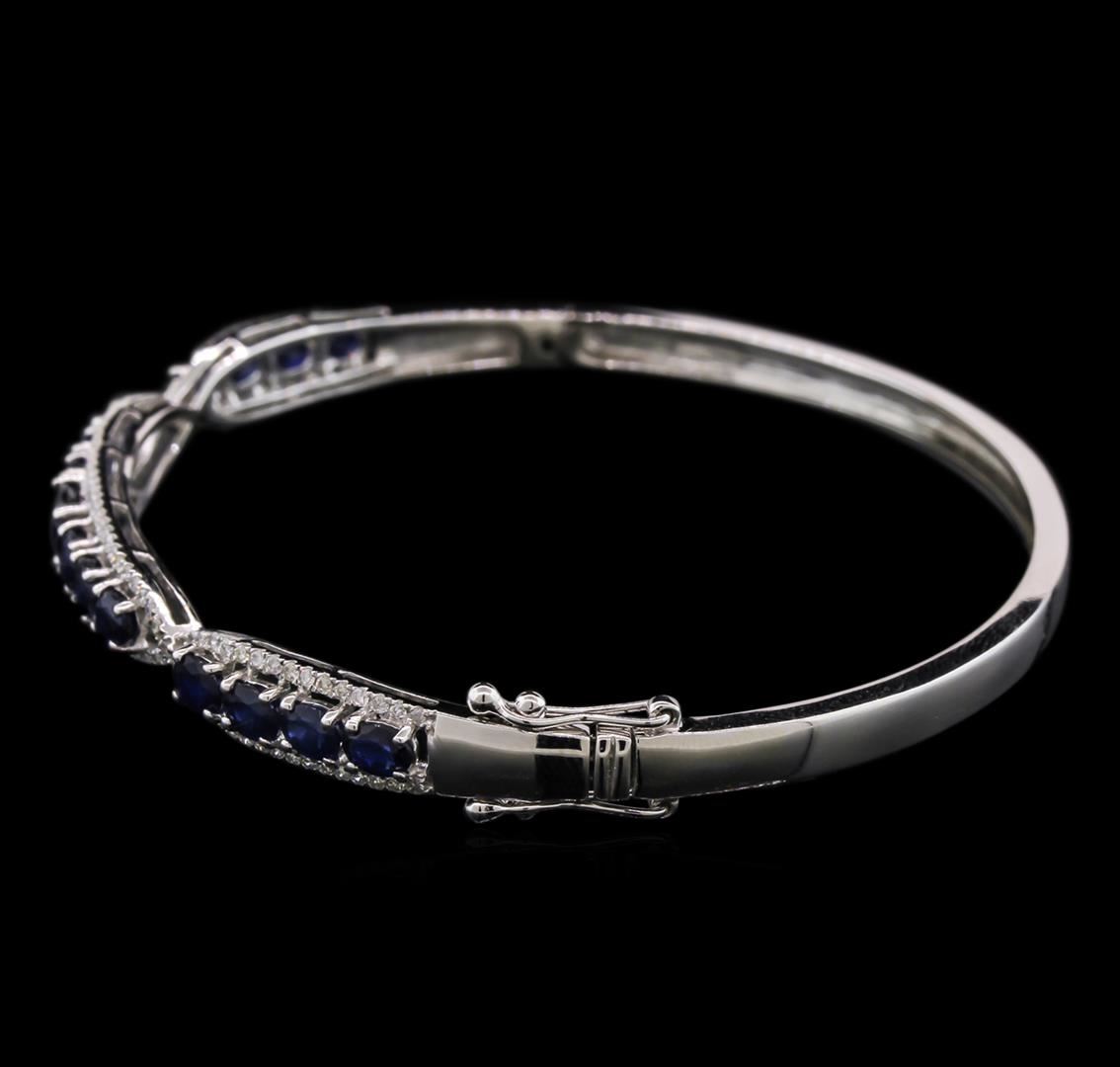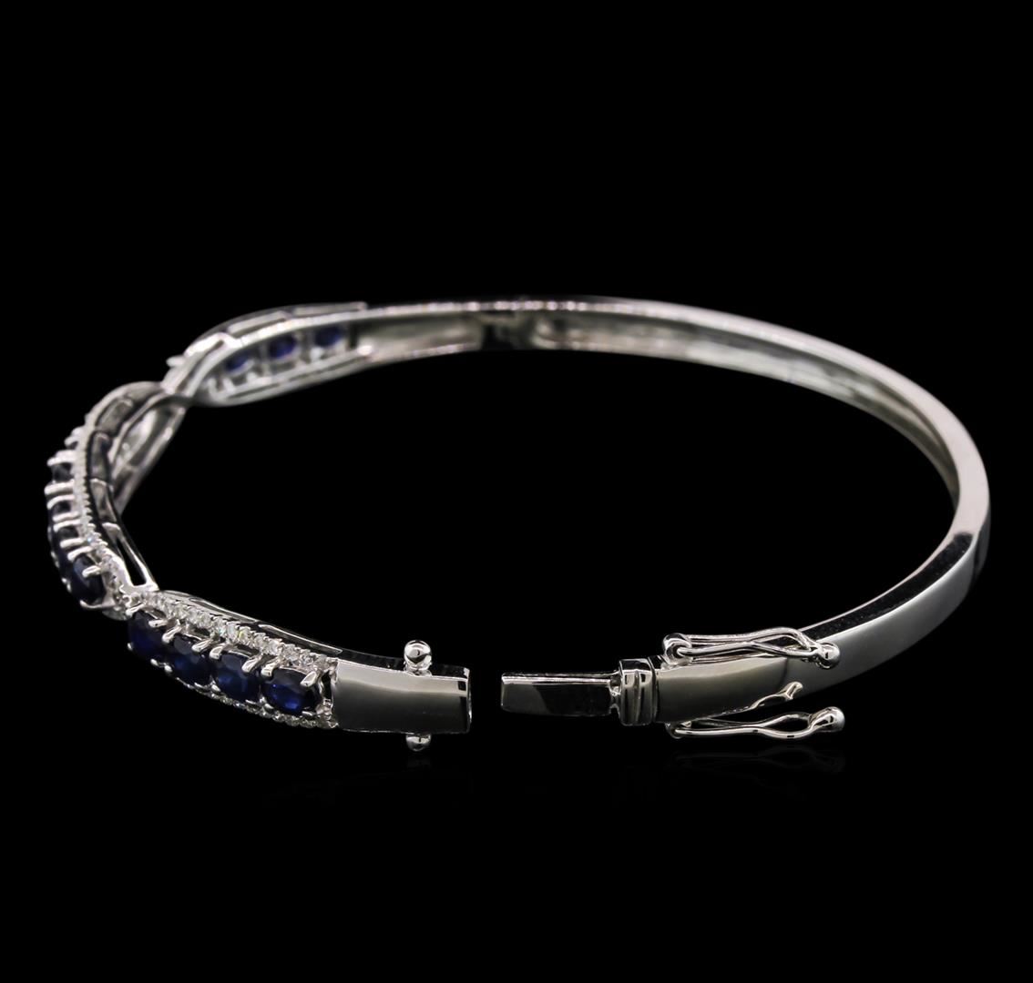 One bangle bracelet featuring: 14KT white gold weighing 11.40 grams containing 15 blue sapphires with a total weight of 3.60ct and diamonds with a total weight of 0.63ct.