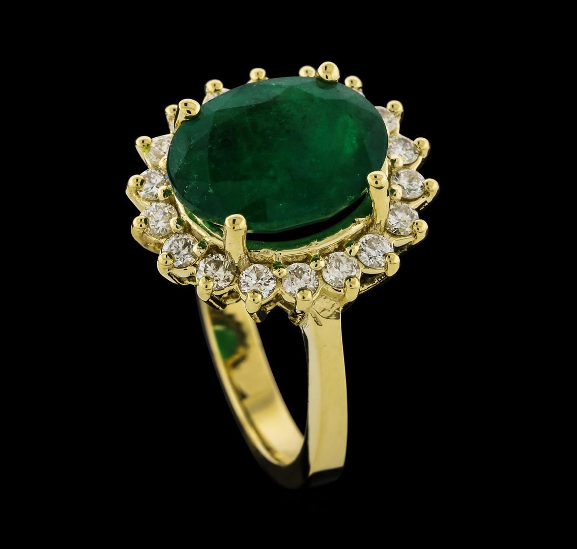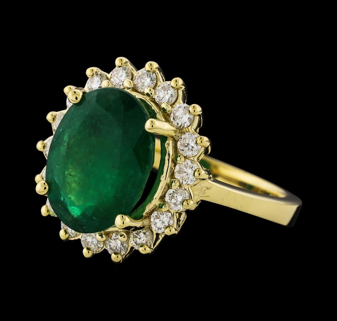 One Ring : 14KT yellow gold weighing 5.42gm containing one emerald with a total weight of 3.65ct and side diamonds weighing 0.47ctw.