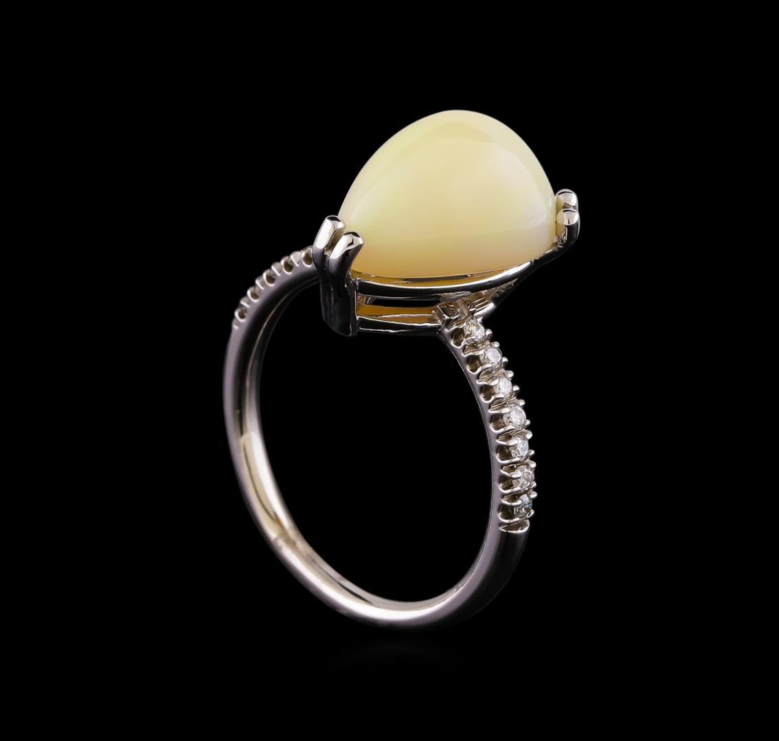 One ring featuring: 14KT white gold weighing 3.30 grams containing one opal with a total weight of 3.65ct and diamonds with a total weight of 0.14ctw.