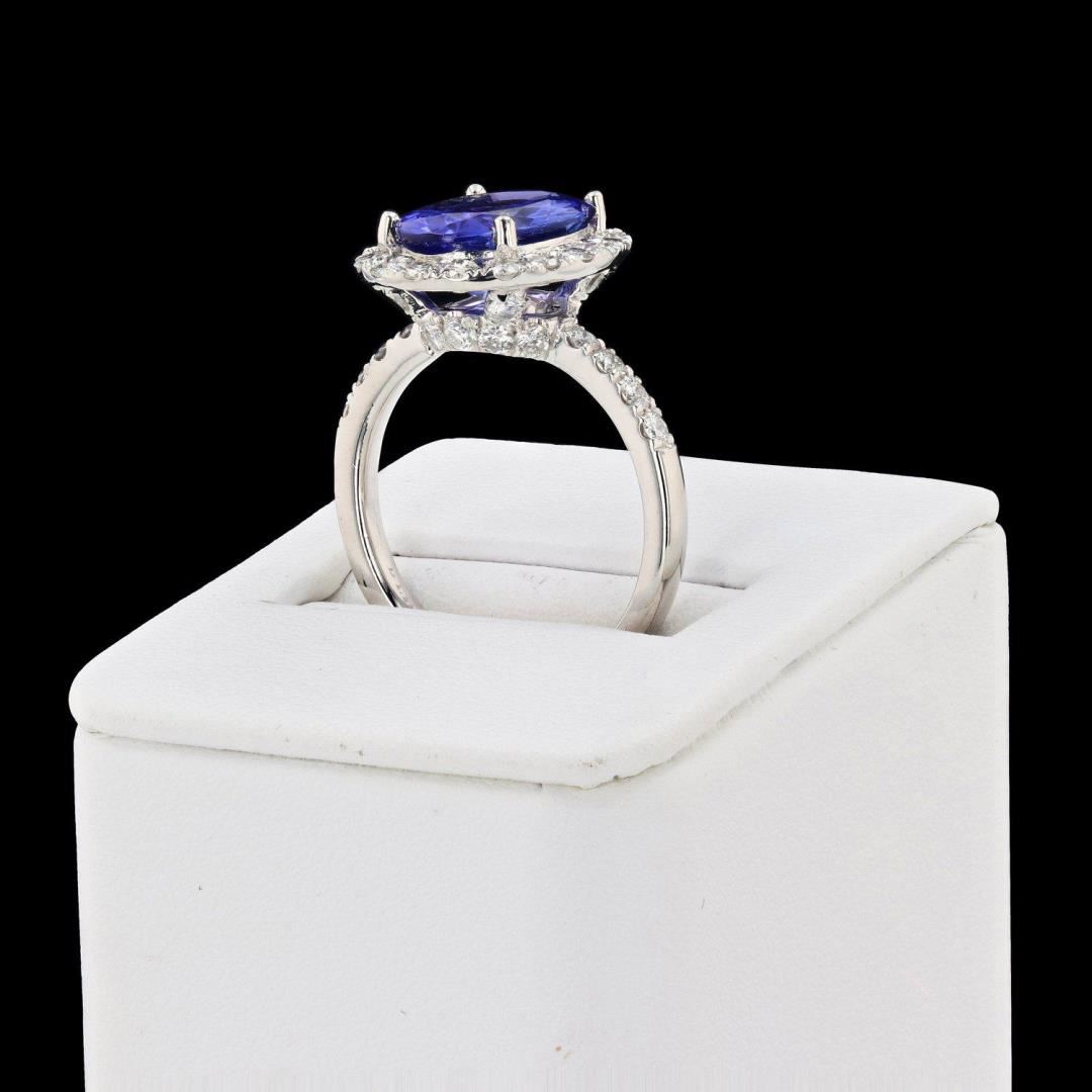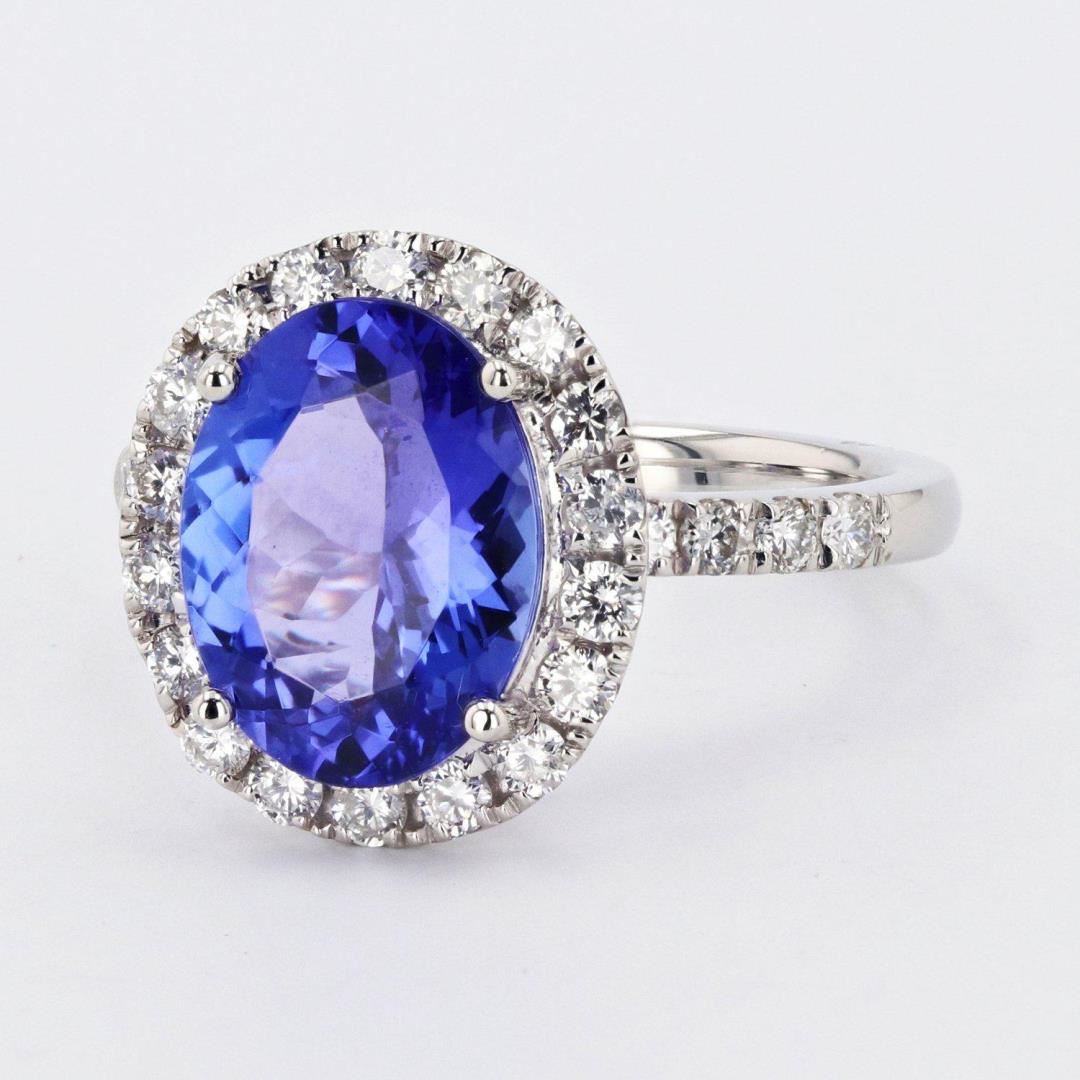 ONE PLATINUM STAMPED LADY'S CUSTOM MADE DIAMOND & TANZANITE RING. 7.20 GR TW. CONTAINING:1 - MAIN CENTER GEMSTONE(S): IDENTITY : ONE CENTER NATURAL TANZANITE SET IN PRONGS SETTING STYLE.CARAT WEIGHT : 3.65 CT. SHAPE & MEASUREMEMT : OVAL CUT. APPROX : 11.88 X 9.11MM. QUALITY : FINE BLUE/PURPLISH COLOR , FINE CUT & CLARITY. 2 â€" ADJACENT GEMSTONES:IDENTITY : NATURAL DIAMONDS. SHAPE : ROUND BRILLIANT CUT. CARAT WEIGHT : 1.11 CTW. QUALITY : G/H COLOR , SI1 CLARITY. ALL FINE CUTTING AND PROPORTIONS. ALL PRONGS SETTINGS STYLE. TOTAL GEMSTONES WEIGHT : 4.76 CTS TW. #LREF-5118