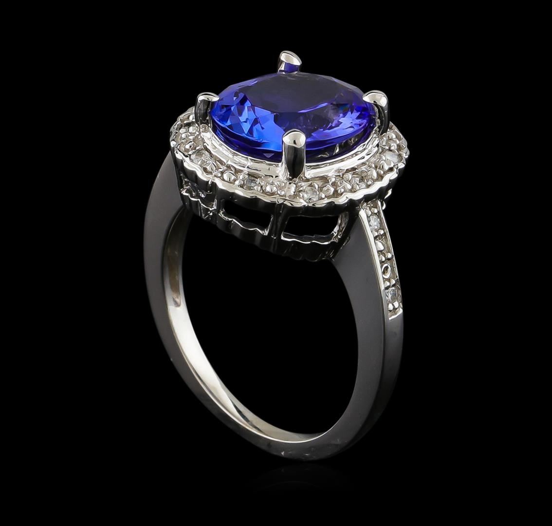 One Ring featuring: 14KT White Gold weighing 5.45 grams containing one Tanzanite center stone with a total weight of 3.65ct and Diamonds with a total weight of 0.12ct.