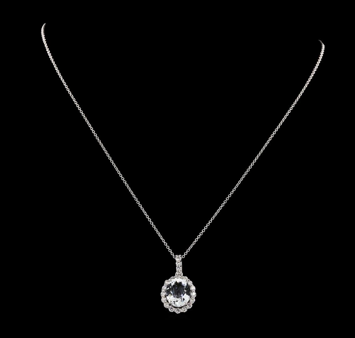 One Aquamarine and Diamond Pendant with Chain including: 14KT White Gold weighing a total of 3.27 grams, Aquamarine weighing a total of 3.67ct, and 20 Diamonds weighing a total of 0.71ctw.