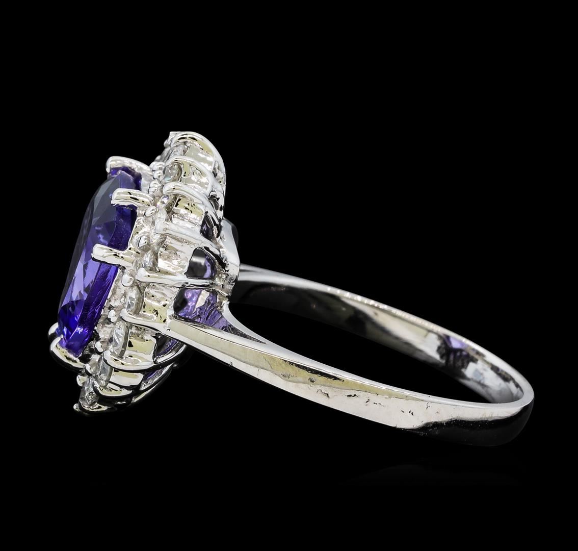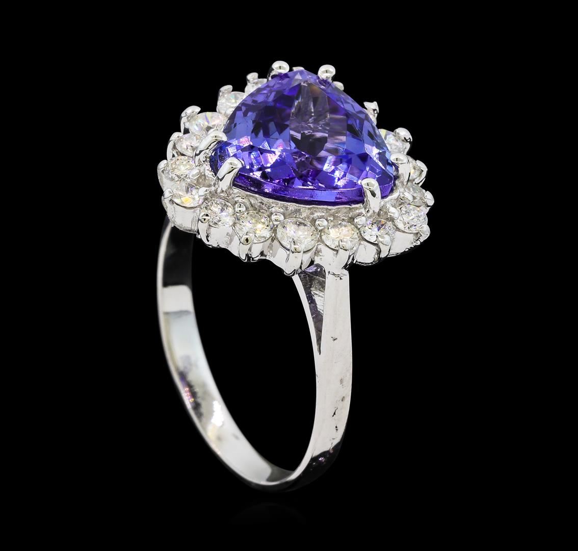 One Tanzanite and Diamond Ring including: 14KT White Gold weighing a total of 4.07 grams, Tanzanite weighing a total of 3.70ct, and 18 Diamonds weighing a total of 0.65ctw.
