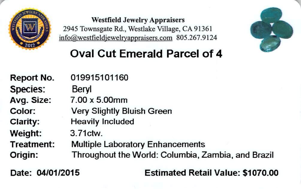 One 3.71 ctw Oval Mixed Emerald Parcel.