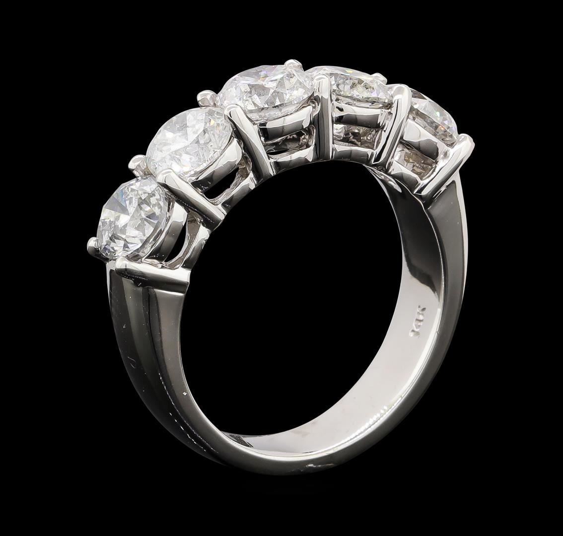 One electronically tested 14KT white gold lady's cast 5-stone wedding ring with a bright polish finish. The featured lady's ring has a shank measuring 4.60 millimeters wide. Identified with markings of '14K'. Condition is new, good workmanship. Containing: Five prong set round brilliant cut diamonds, measuring 5.90 - 5.50 x 3.56mm (depth est.) approximate total weight of 5 Stones = 3.73ct. Graded in the setting. Clarity I-1 to I-2. Color: G - I Cut Good. Total Weight of Diamonds 3.73ct.. Total Weight of Ring 8.00gm. GAS Appraised at $14,215.00.