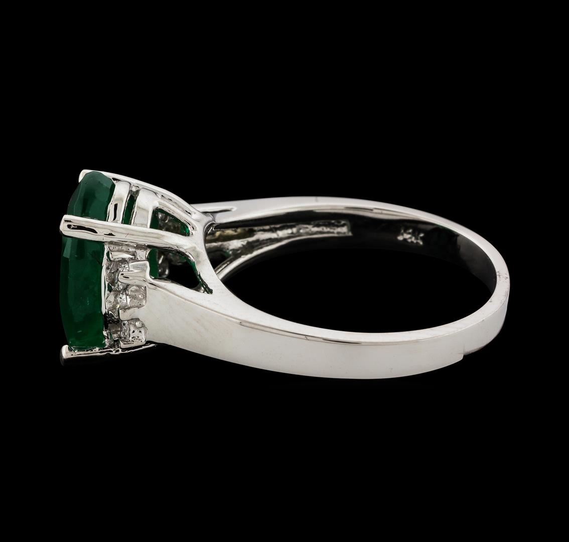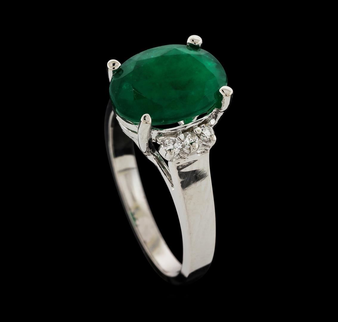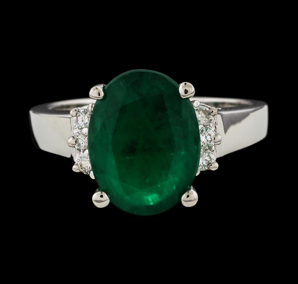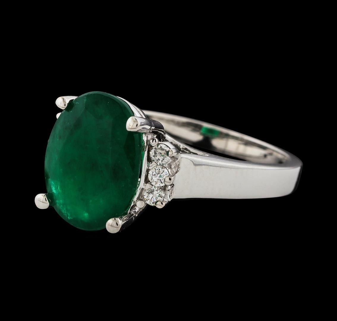One Ring : 14KT white gold weighing 5.28gm containing one emerald with a total weight of 3.73ct and side diamonds weighing 0.15ctw.
