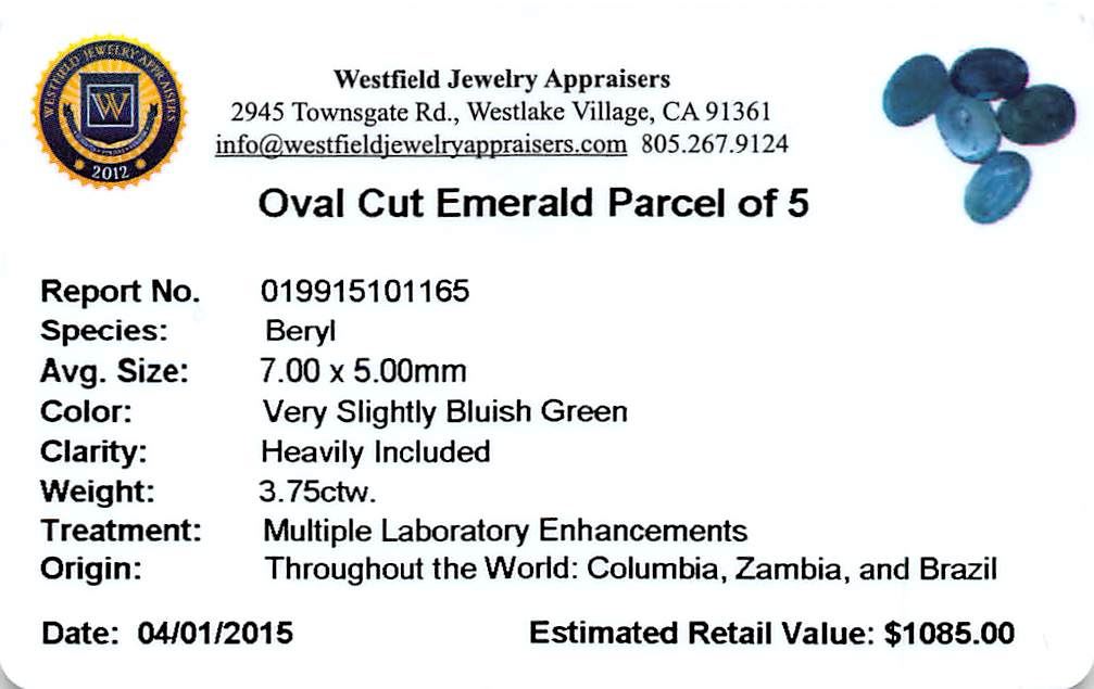 One 3.75 ctw Oval Mixed Emerald Parcel.