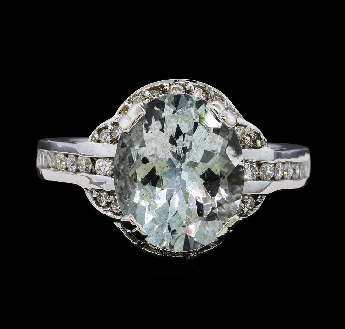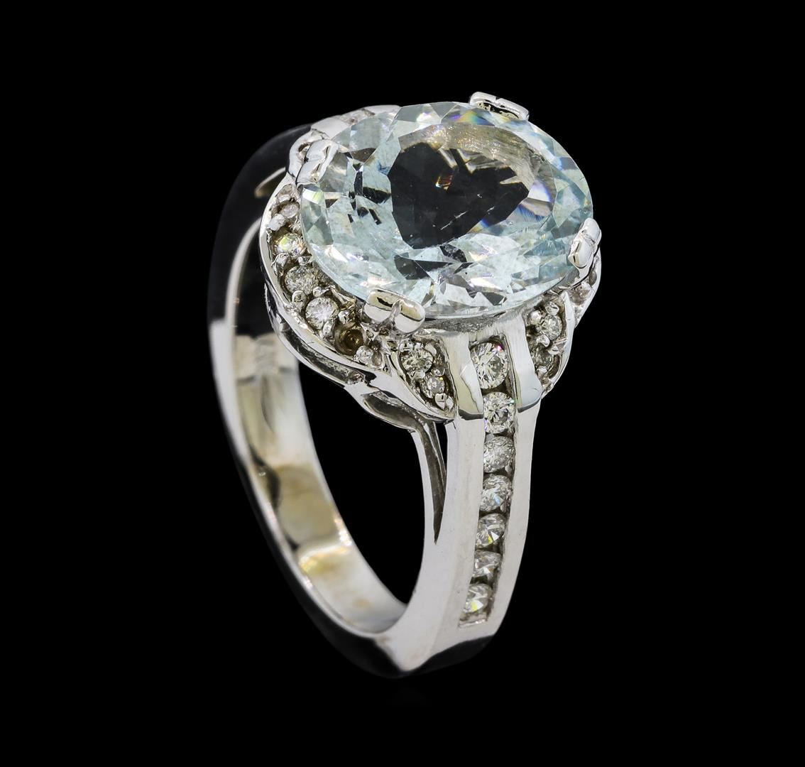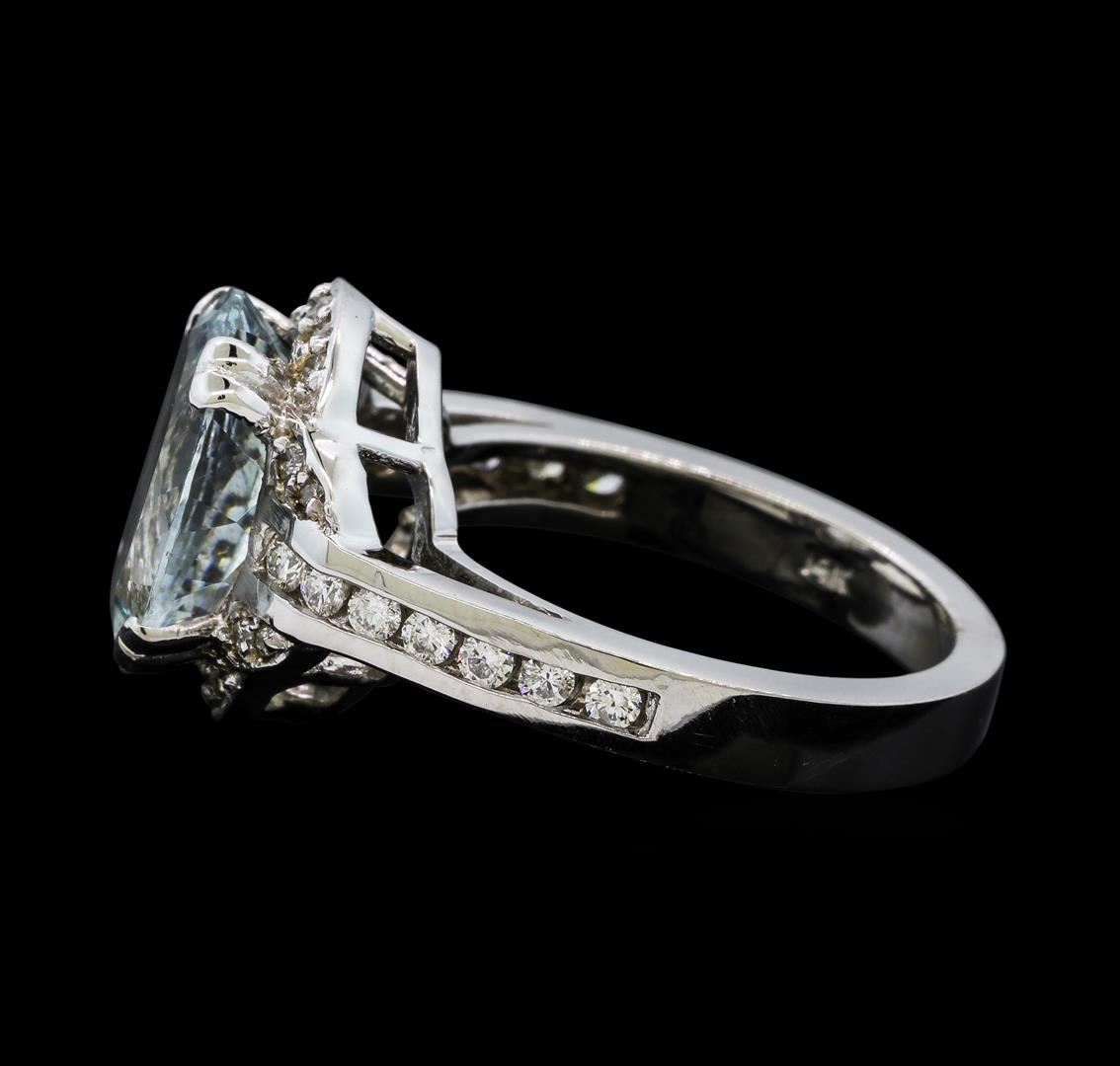 One Aquamarine and Diamond Ring including: 14KT White Gold weighing a total of 6.72 grams, Aquamarine weighing a total of 3.77ct, and 32 Diamonds weighing a total of 0.45ctw.