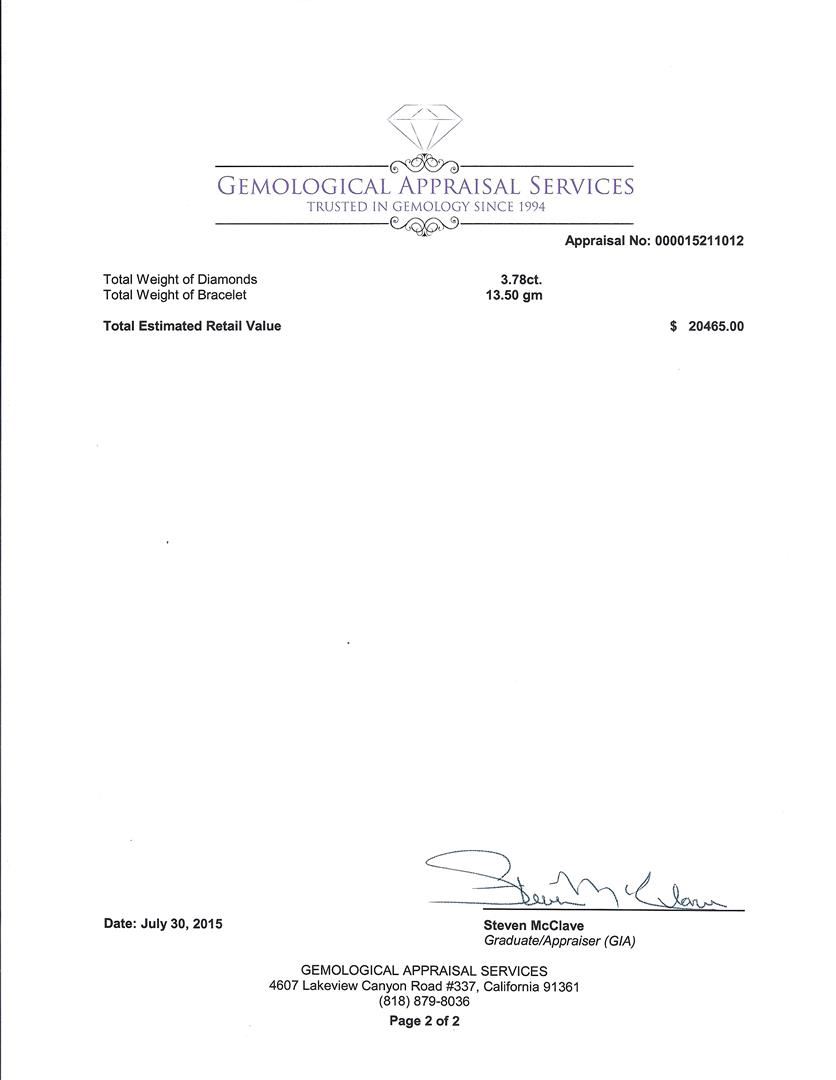 Not all Jewelry, watches or loose stones are appraised and the appraisals are provided for bidders only in certain instances at the discretion of SAA. Our appraisals are conducted by independent third-party appraisal firms. Such firms may be certified GIA Gemologists or have education in the industry or alternative certifications. Appraisals should be used for verification of gemstone and/or metal weight, size, and grade only, not actual value for resale or insurance purposes. Appraisal value should be not considered for actual value, as price varies greatly from retail locations and other merchants in different geographic locations. All Items auctioned by SAA should not be purchased with a view or expectation toward resale for appraisal price given, or to make a profit. The ultimate value for which an item can be resold may vary drastically from the appraisals listed by SAA.