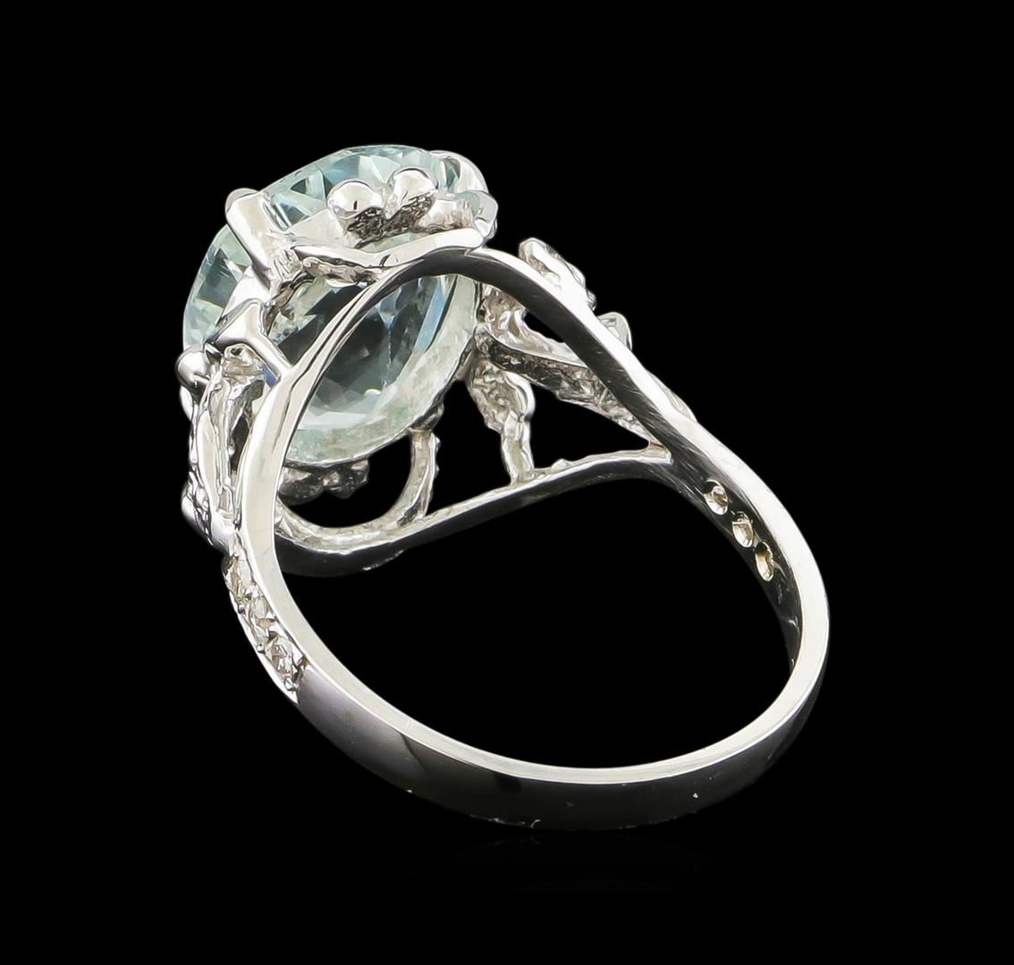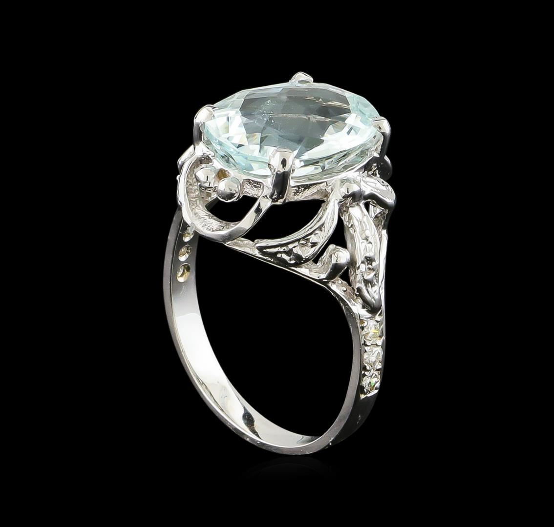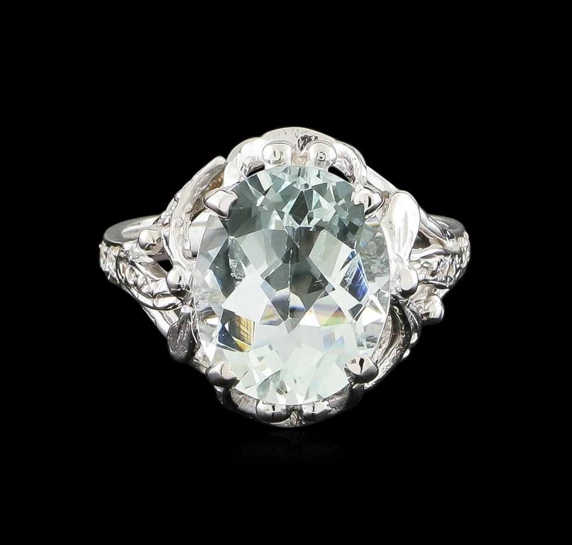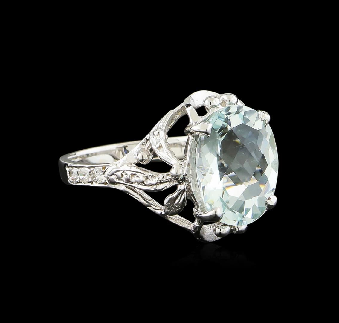 One Ring featuring: 14KT White Gold weighing 3.6 grams containing one Aquamarine center stone with a total weight of 3.82ct and Diamonds with a total weight of 0.1ct.