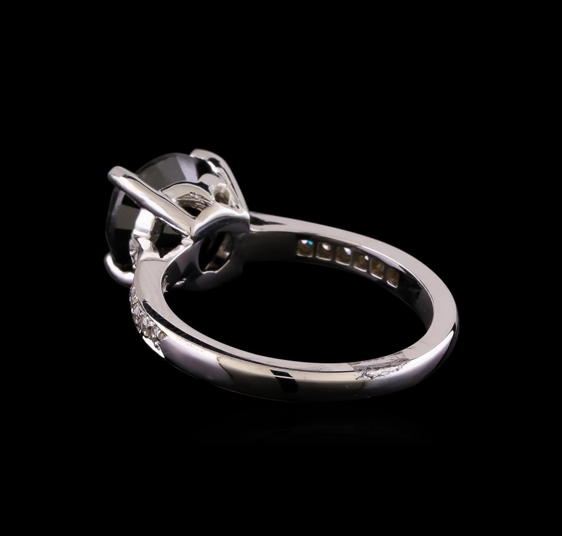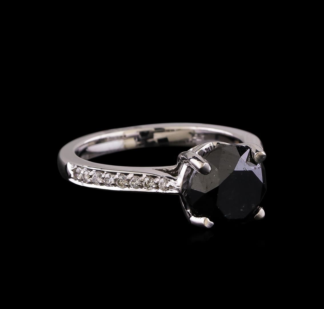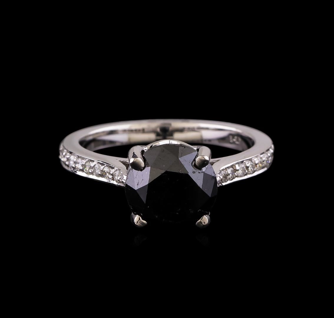One ring featuring: 14KT white gold weighing 3.76 grams containing one black diamond with a total weight of 3.85ct and diamonds with a total weight of 0.16ctw.