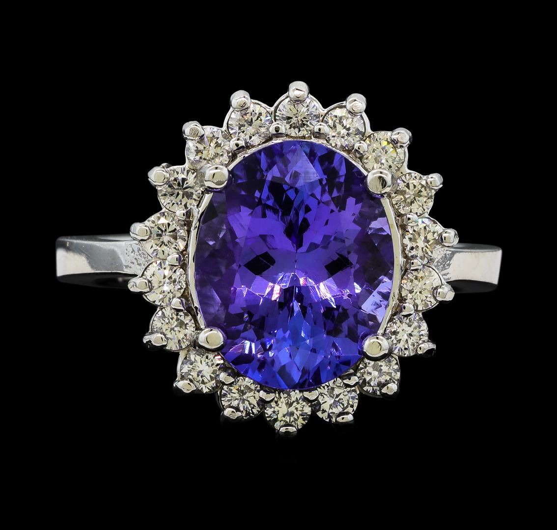 One Tanzanite and Diamond Ring including: 14KT White Gold weighing a total of 5.42 grams, Tanzanite weighing a total of 3.86ct, and 18 Diamonds weighing a total of 0.58ctw.