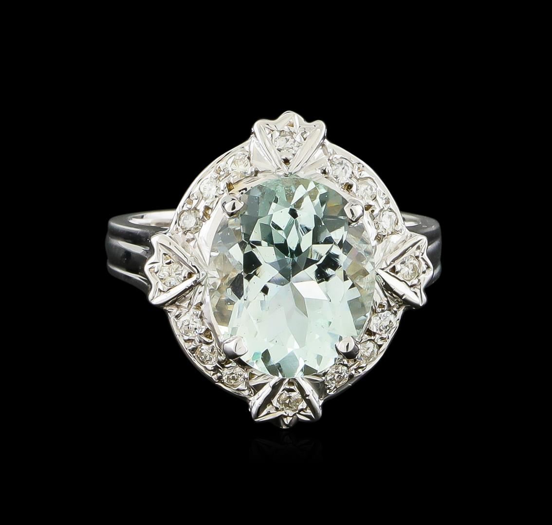 One Ring featuring: 14KT White Gold weighing 5.58 grams containing one Aquamarine center stone with a total weight of 3.87ct and Diamonds with a total weight of 0.22ct.
