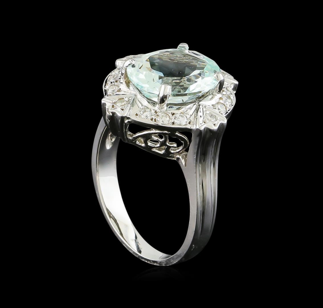 One Ring featuring: 14KT White Gold weighing 5.58 grams containing one Aquamarine center stone with a total weight of 3.87ct and Diamonds with a total weight of 0.22ct.