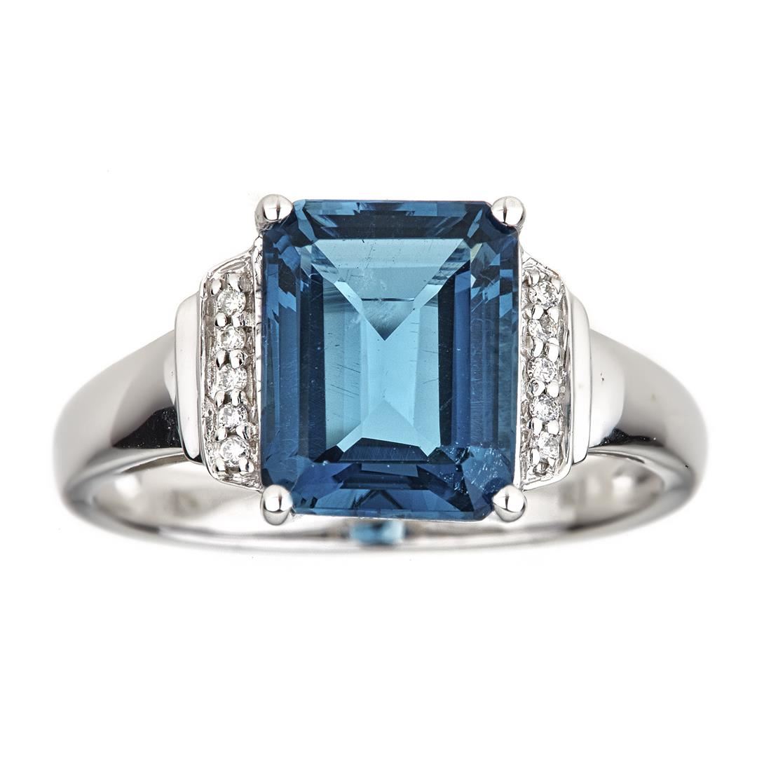 One Ring : 10KT white gold weighing 2.06gm containing one London blue topaz center stone with a total weight of 3.88ct and side diamonds weighing 0.04ctw.