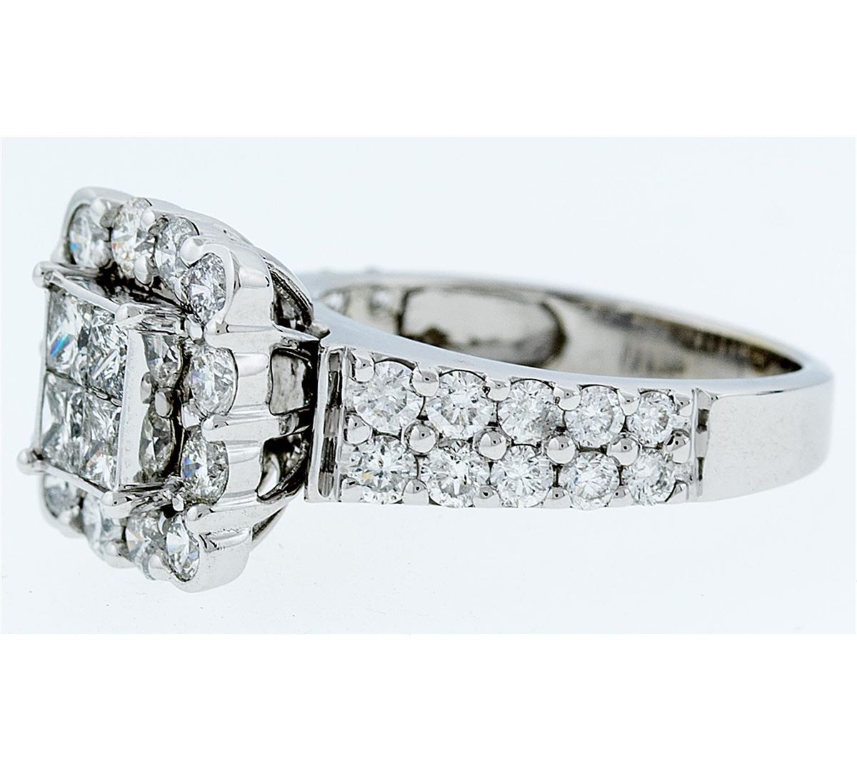 One Polished, stamped and tested 14K white gold three ring set with a bright finish. The rings are mounted with: 4 genuine square diamonds weighing approximately 0.68 carats, and 58 genuine round diamonds weighing approximately 3.22 carats. The set weighs 11.8 grams, condition is excellent, Identity: Natural Diamond, Shape: Square Round, Cutting Style: Brilliant Cut, Diamond Count: 62 Diamonds, Measurements 3.0 X 3.0mm (4 Square Diamonds) 2.0 - 3.0 MM (58 Round Diamonds), Total Weight: 3.90 carats, Color: G - H, Clarity: SI-SI2, Color Grade: G - H, Cut: Very Good, Refractive Index 2.417, Hardness: 10. This set comes with all three rings and includes an appraisal. AIGL Appraised at $11,728.00.